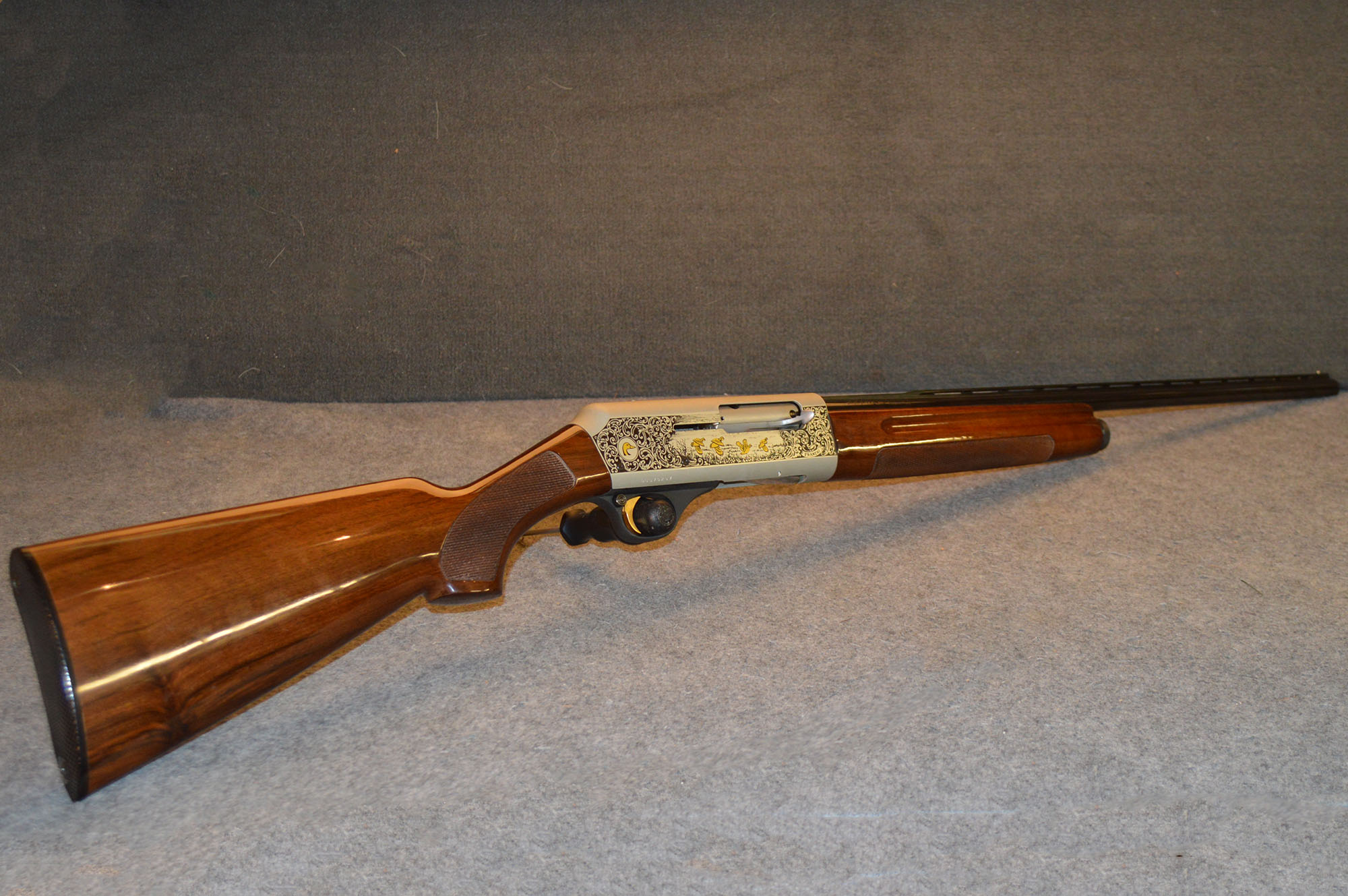 This Franchi AL48 Ducks Unlimited 20 Gauge is in great shape. There are a few light handling marks in the wood and the bluing appears to be strong. It is a very light shotgun with a 2.75 inch chamber. The 26" barrel only adds to its agility to create an exceptional hunting gun.