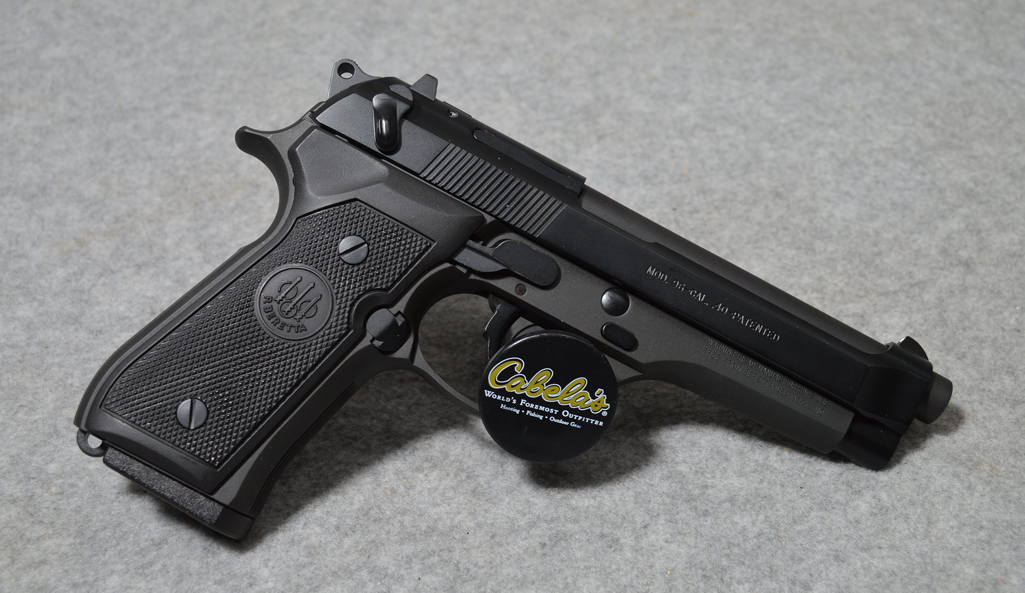 The Beretta 96 is a full-size, DA/SA semi-automatic pistol chambered in .40 S&W, introduced in the 1990s as a more powerful, law-enforcement-focused alternative to the 9mm Beretta 92FS/M9. It features an open-slide design, aluminum alloy frame, and 11–12 round capacity, known for high reliability, durability, and a "snappy" recoil. This pistol is in excellent condition, and comes with the factory box.