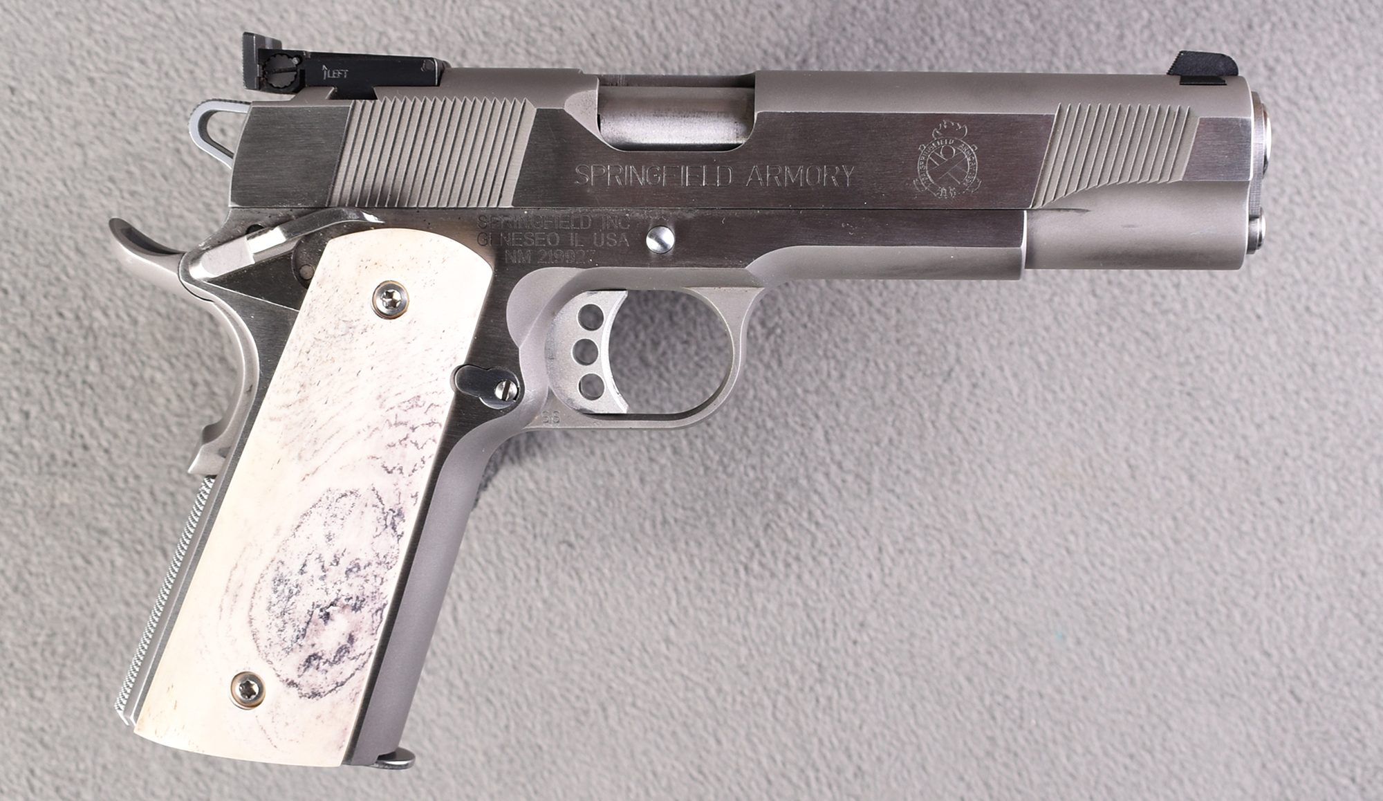 Previously owned by noted six-gun authority John Taffin, this Springfield Armory 1911A1 chambered in 9mm is a semi-automatic pistol with a 5-inch barrel, weighing 2.75 pounds. The pistol remains in excellent condition and comes with one 9-round magazine as well as an additional barrel chambered for .30 Luger, offering an interesting and uncommon caliber option within the classic 1911 platform. The pistol is fitted with custom grips made specifically for John Taffin, which can be clearly seen in the photographs. The grips are handmade by Scott Koehler of SK Custom Grips and are crafted from American Bison bone. Marked "No. 1 of 30," they represent a limited custom set produced for Taffin and add a distinctive and personal touch to this firearm from his collection. Throughout his career, Taffin wrote extensively about the enduring appeal of the 1911 platform, often highlighting its balance, accuracy, and adaptability across a wide range of cartridges. This firearm comes with a Certificate of Authenticity verifying its ownership by John Taffin. Firearms from the personal collection of John Taffin represent a rare opportunity for collectors and enthusiasts to own a firearm connected to one of the most respected writers and historians in the world of classic American handguns and sixguns. Please be sure to carefully review all photos provided to fully understand the condition of this firearm before purchasing.