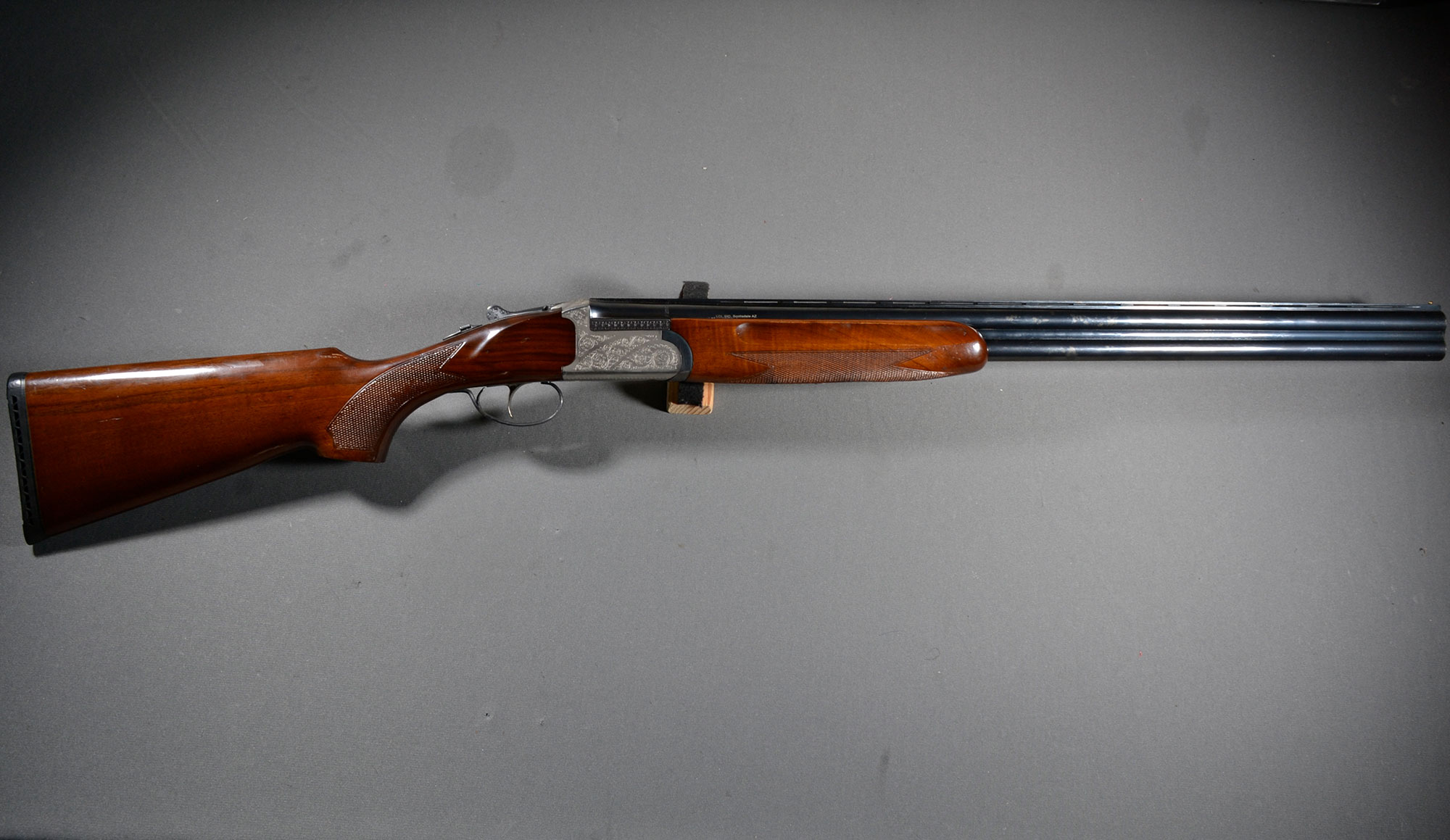 A Spanish made Over/under chambered for 12 Gauge. Fixed Chokes: Top: full Bottom: mod