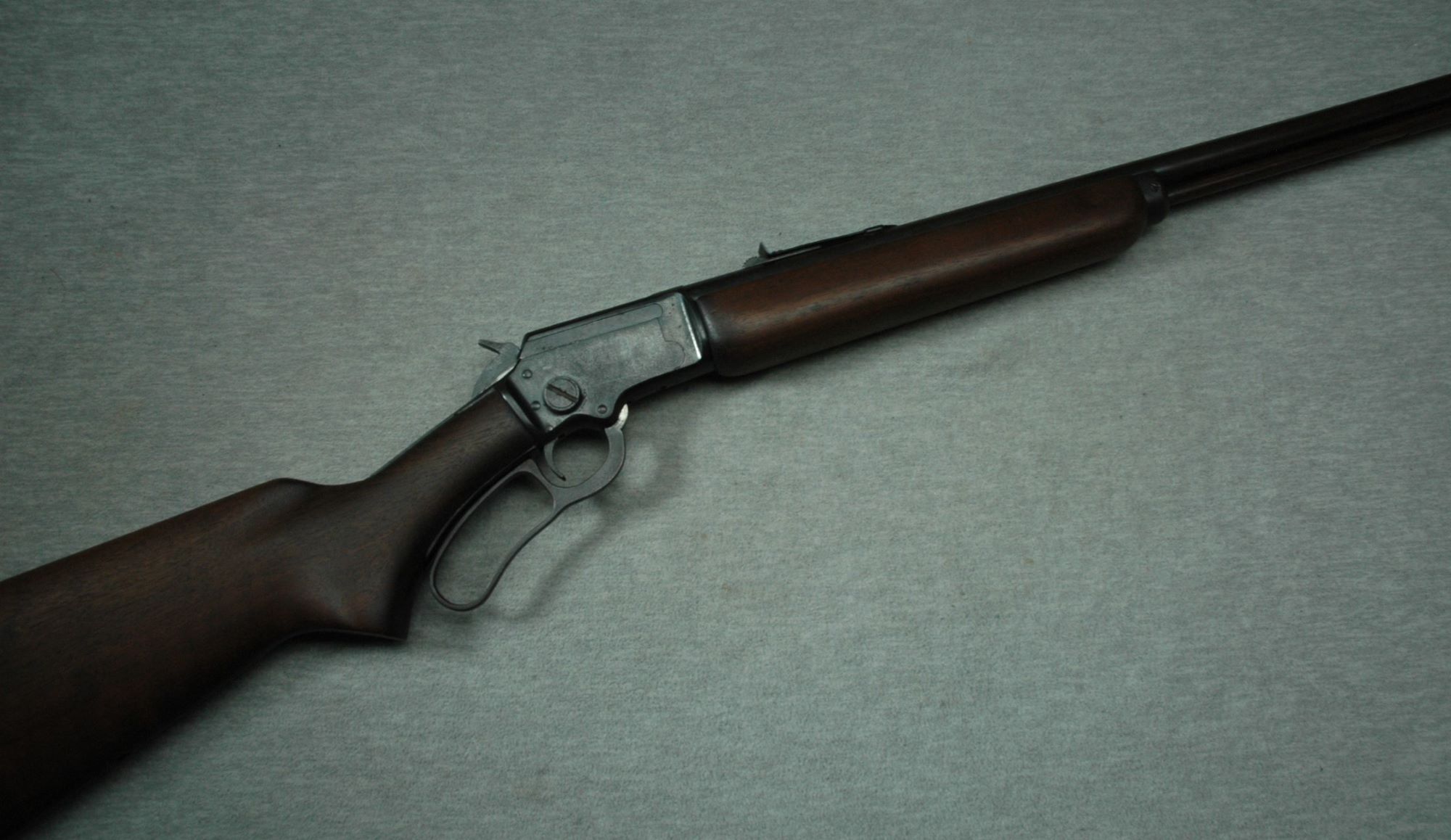 Marlin Model 39-A Take-down Lever action rifle chambered in .22 S, L, LR. It features a 24" round barrel, pistol grip stock, and a steel tubular magazine under the barrel with a brass inner tube. Two-Line address on top of barrel. Blade front sight and rear adjustable notch sight. Hard rubber butt plate. This is a takedown version and has a large takedown screw on the receiver's right side. This screw had an oversize flat-head slot you could twist with coins. Based on the serial number, this rifle was made in 1953. No box.