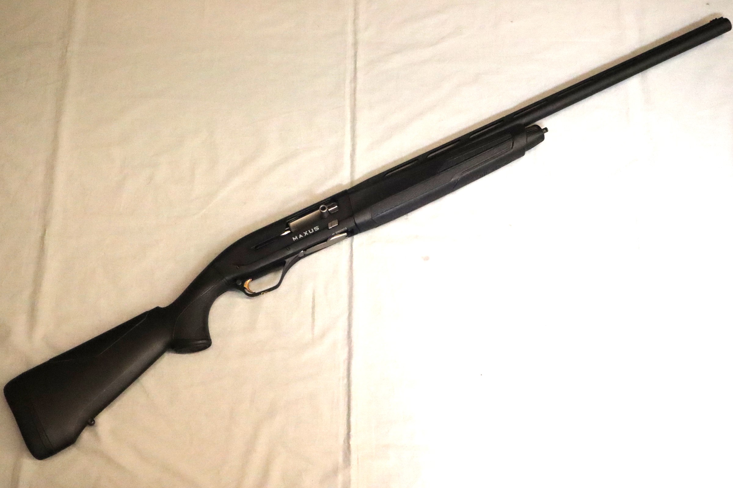 This Browning Maxus is a right-handed, semi auto shotgun chambered in 12 gauge.