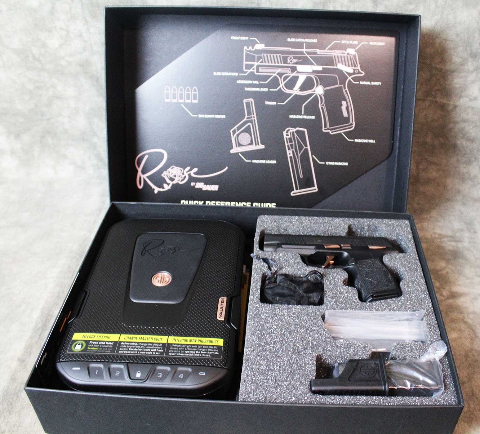 Firearm comes with original packaging in pristine condition! It includes an additional magazine, a magazine loader, and a Sig Vaultek Lifepod!