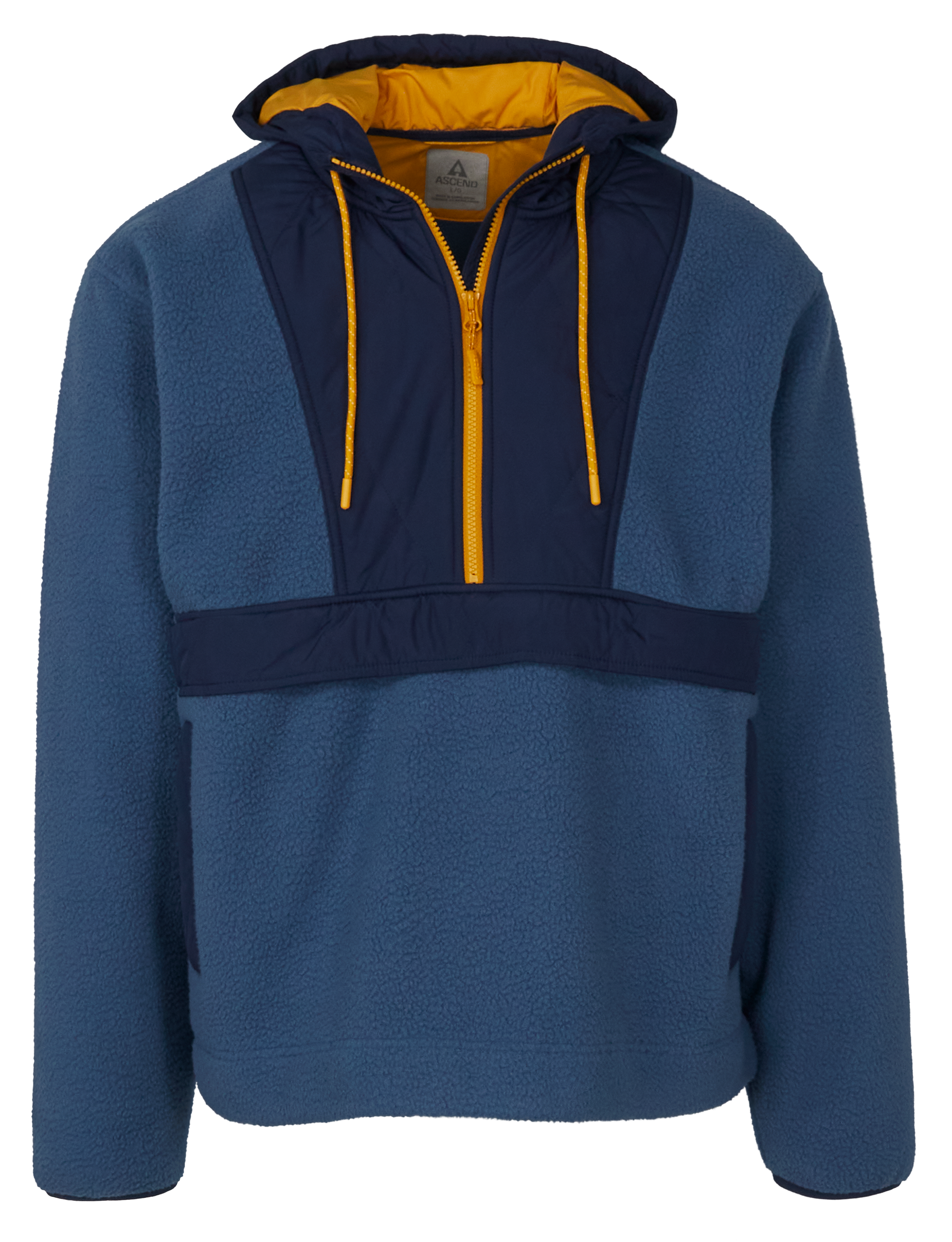 Stay warm through chilly adventures with the Ascend® Orizaba Berber Half-Zip Hooded Pullover Jacket for Men. This men's fleece jacket has soft, anti-pilling berber fleece that retains natural body heat for excellent lightweight warmth. A lined, attached, drawstring hood shields against wind and rain. The half-zip front allows custom coverage or ventilation on demand, with an interior storm flap for an extra barrier from the elements. A front placket overlay adds style and extra ruggedness, and hand pockets give a warming boost anytime. 100% recycled polyester berber fleece. Machine wash. Imported.