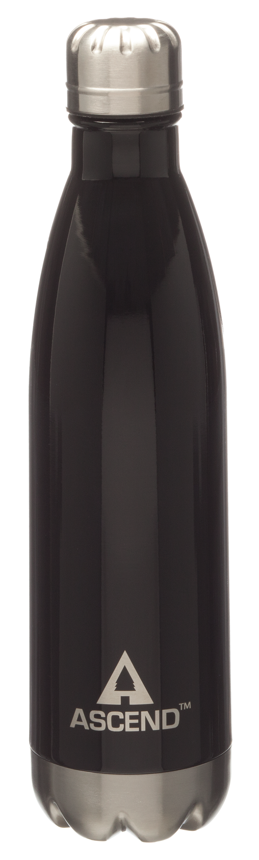 Keep your drinks cold or hot for hours with the Ascend® Slimline Insulated Water Bottle, the only thermal bottle with Ascend's legendary rugged durability. Food-grade 18/8 stainless steel construction offers incredibly sanitary housing of your favorite hot or cold drink or soup, with double-wall vacuum insulation for maximum temperature retention. It even stays cool to the touch with hot beverages. The Ascend Slimline Insulated Water Bottle makes a perfect companion for hikes, floats, camping, live events, the job site, or a long day of outdoor work. Like all insulated bottles, avoid carbonated drinks to avoid sudden eruption of pressurized liquid, and avoid microwave use.