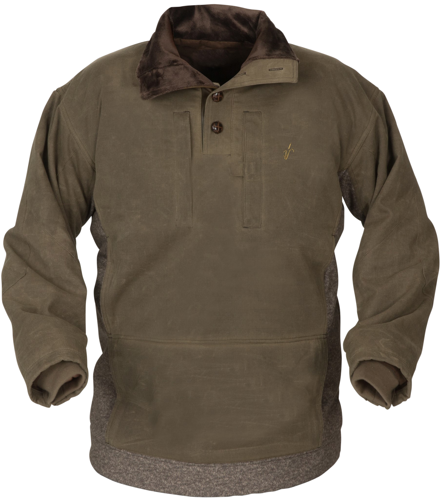 fleece overlaid in 8 oz. olive drab waxed cotton, the recipe for a favorite garment.