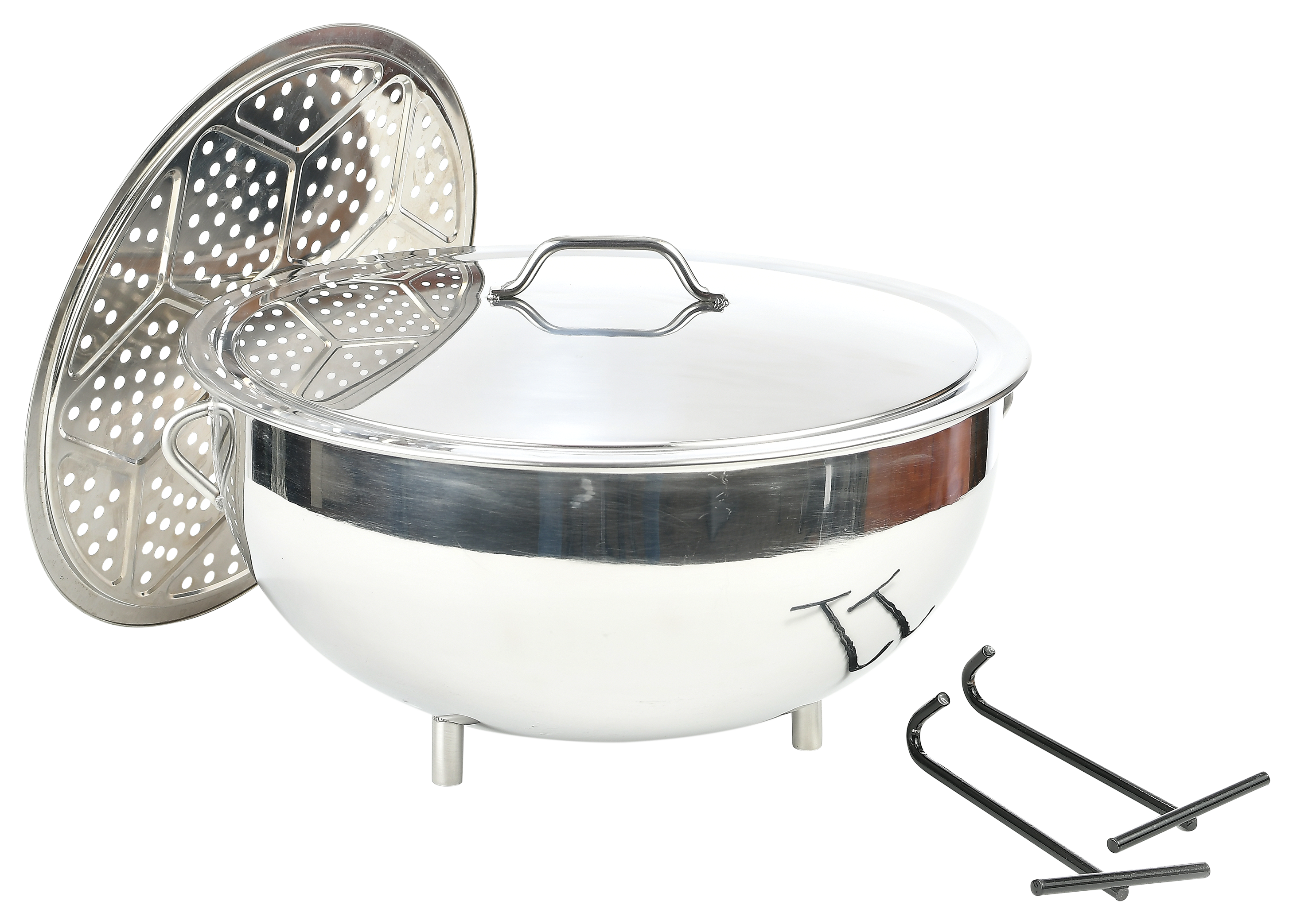 A high-capacity, multi-purpose cooking pot for your propane outdoor cooker, the Bass Pro Shops® 5-Gallon Stainless Steel Pot With Steam Plate offers great cooking versatility. A great pot to fix large batches of jambalaya, gumbo, chili, soups, stews, and more for big groups, this durable stainless steel pot is also great for frying. The included stainless steel steam plate also lets you steam seafood, tamales, veggies and more over your outdoor propane burner. Bottom feet help keep the pot in place over the burner while you cook, while the included steel lifting hooks fit into the holes on the side of the pot so you can safely lift it on or off the burner and carry it to the table when the cooking is done. Stainless steel lid included.