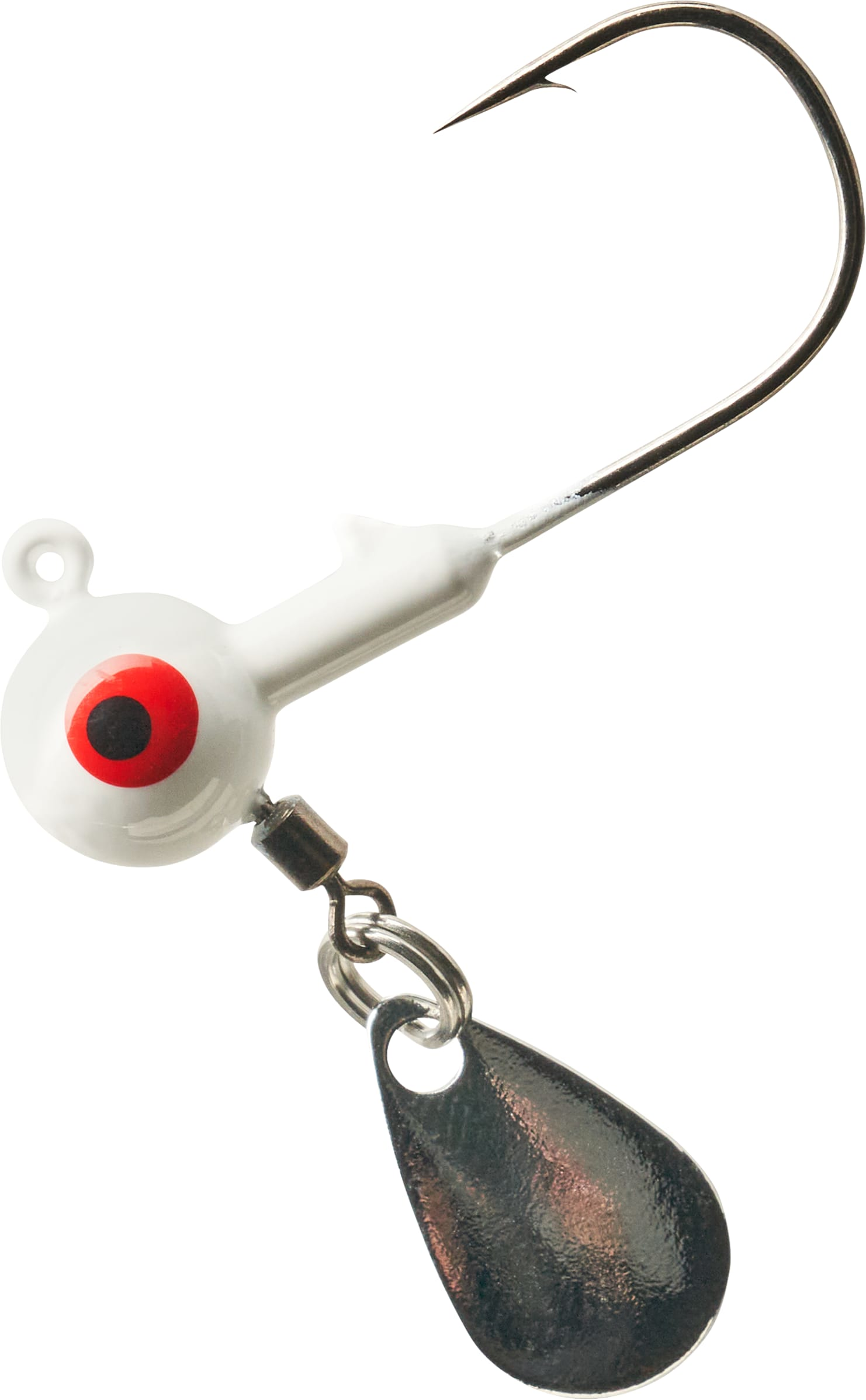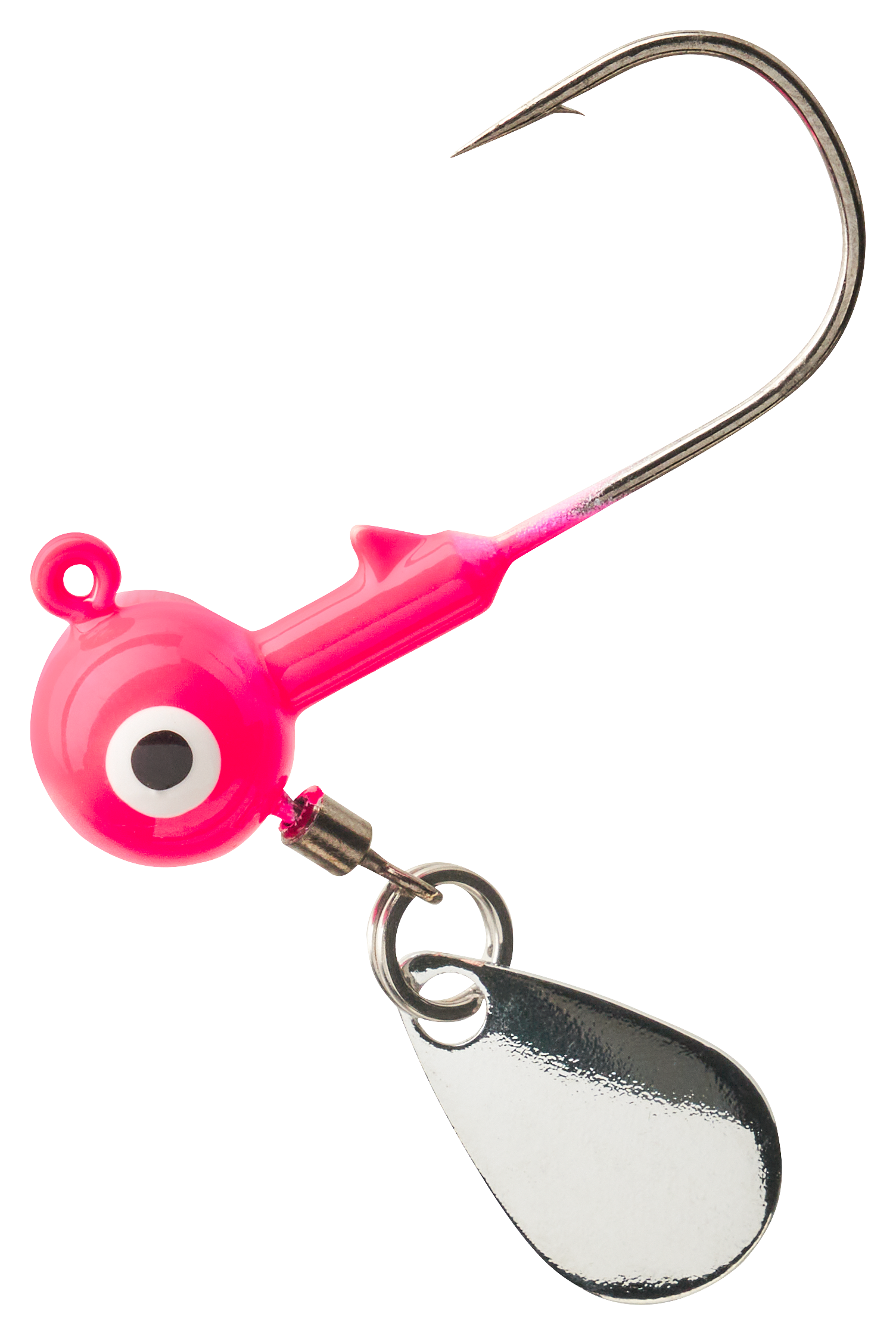 Even the pickiest crappie will find our Bass Pro Shops® Crappie Maxx® Round Head Spinner Jighead too appealing to pass up. Vibrant jighead has a traditional round shape with contrasting double-painted eyes for maximum attraction. The 9/16" Indiana blade adds another layer of appeal with a superior combination of flash and thump to draw quick-hitting reaction strikes from lethargic panfish. Crappie Maxx Round Head Spinner Jighead pairs perfectly with your favorite curly tail grub or other soft plastic bait. Premium construction with black nickel hook ensures quality you can count on.
