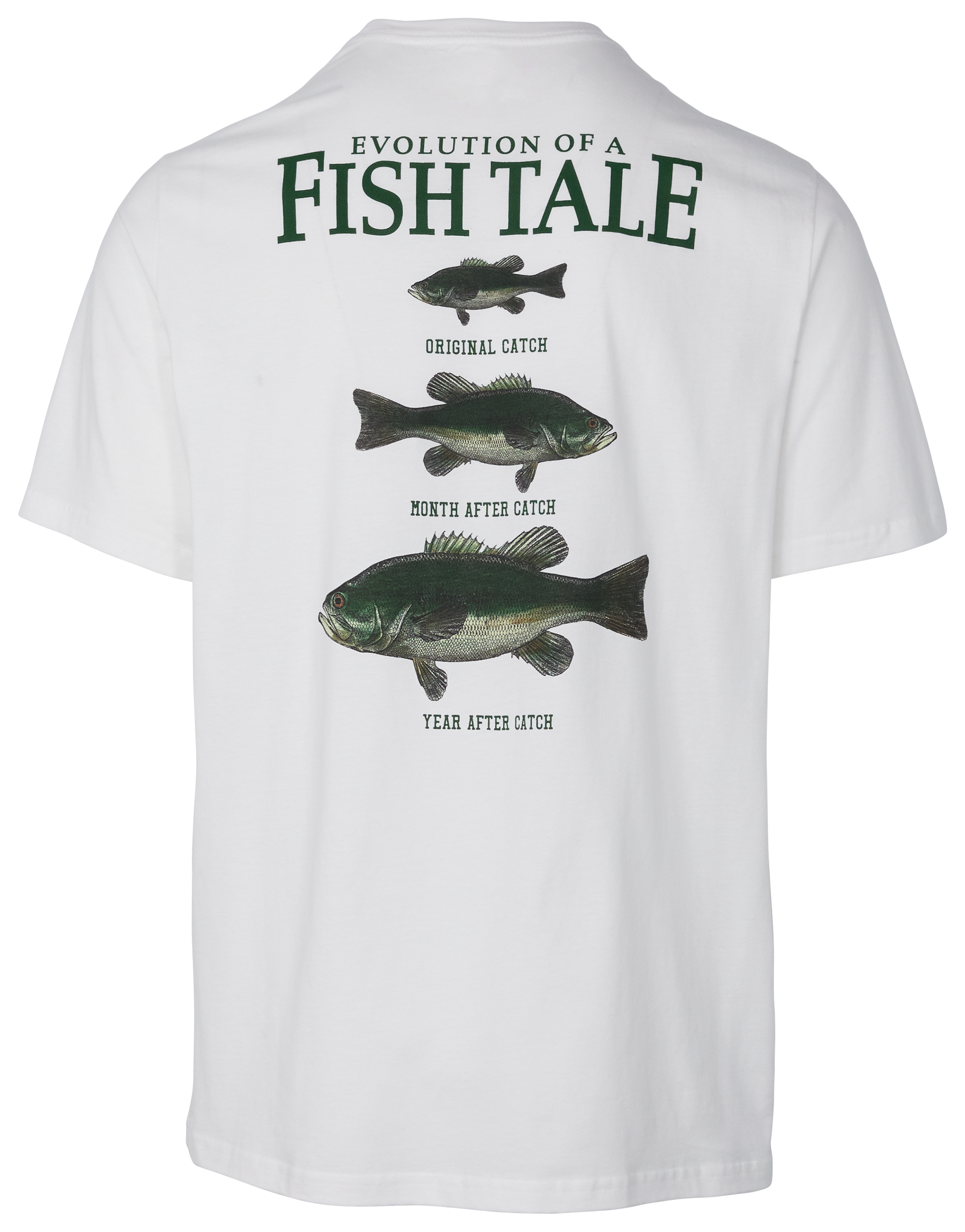 Our Bass Pro Shops® Fish Tale Graphic Short-Sleeve T-Shirt for Men is a fun shirt for anglers of all stripes. The left chest sports the Bass Pro Shops logo. On the back, there's the "Evolution Of A Fish Tale" printed across the back over three images of a progressively larger fish labeled with "Original Catch," "Month After Catch," and "Year After Catch" labels. 100% cotton. Machine wash. Imported.