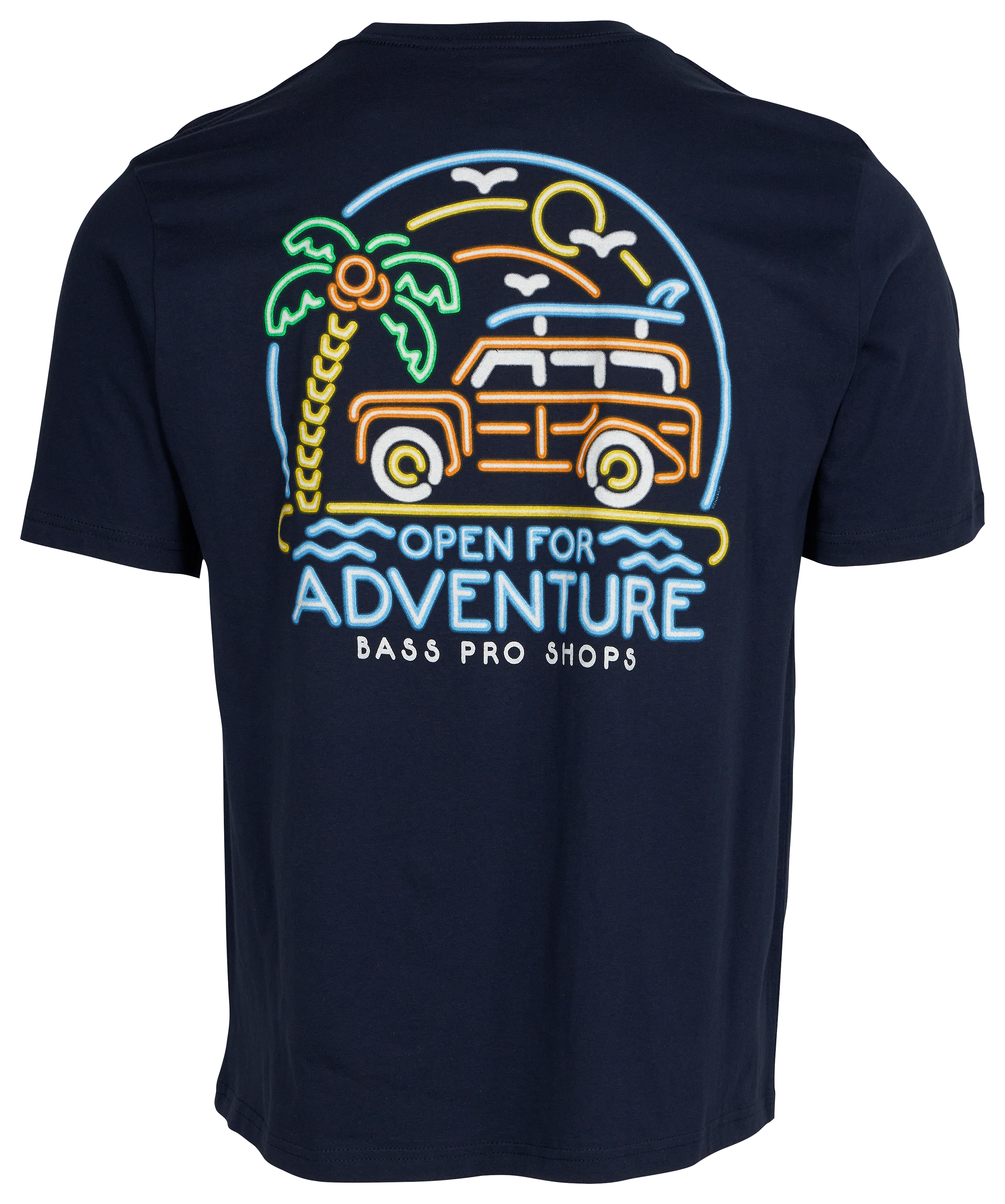 Show your adventurous style with the Bass Pro Shops® Neon Beach Sign Short-Sleeve T-Shirt for Men. This Bass Pro shirt sports neon-style graphics on the back and a classic left-chest logo. A crew neck keeps its shape all day. 100% cotton. Machine wash. Imported.