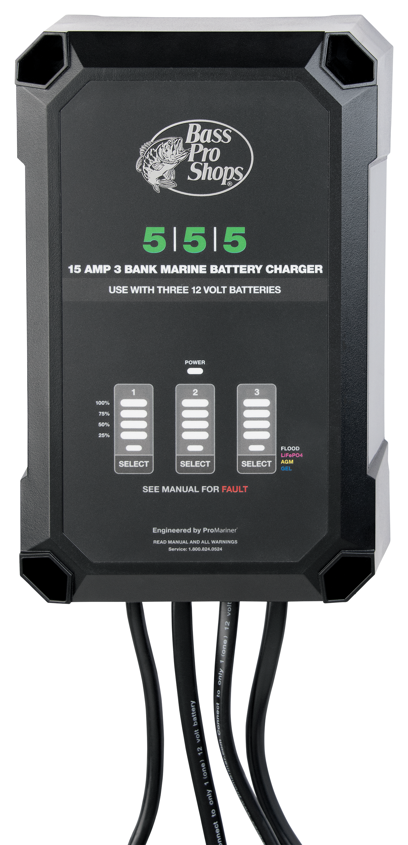 You need the best marine battery chargers and the best battery accessories to help you have the power anytime you need it. Bass Pro Shops carries the fishing and hunting industries' best selection of top-quality marine chargers and accessories so you can spend less time charging and more time enjoying life's adventures.