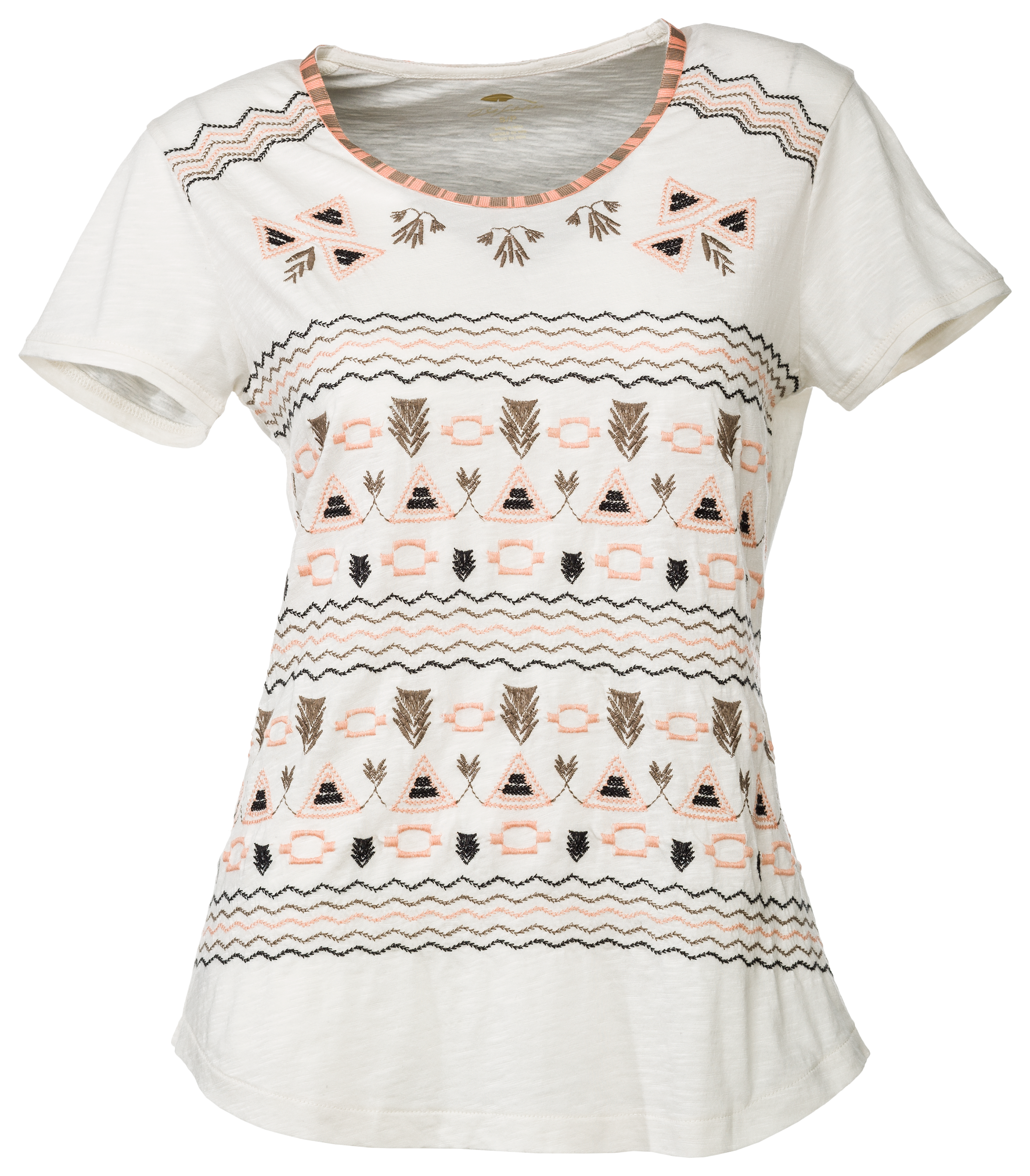 Our Bob Timberlake® Sunset Safari Scoop Neck T-Shirt showcases a colorful embroidered design. This fashion top features short sleeves, scoop neck styling, and a drop tail. The Bob Timberlake Sunset Safari Tee is made of soft, 60% cotton/40% modal. Machine wash. Imported.