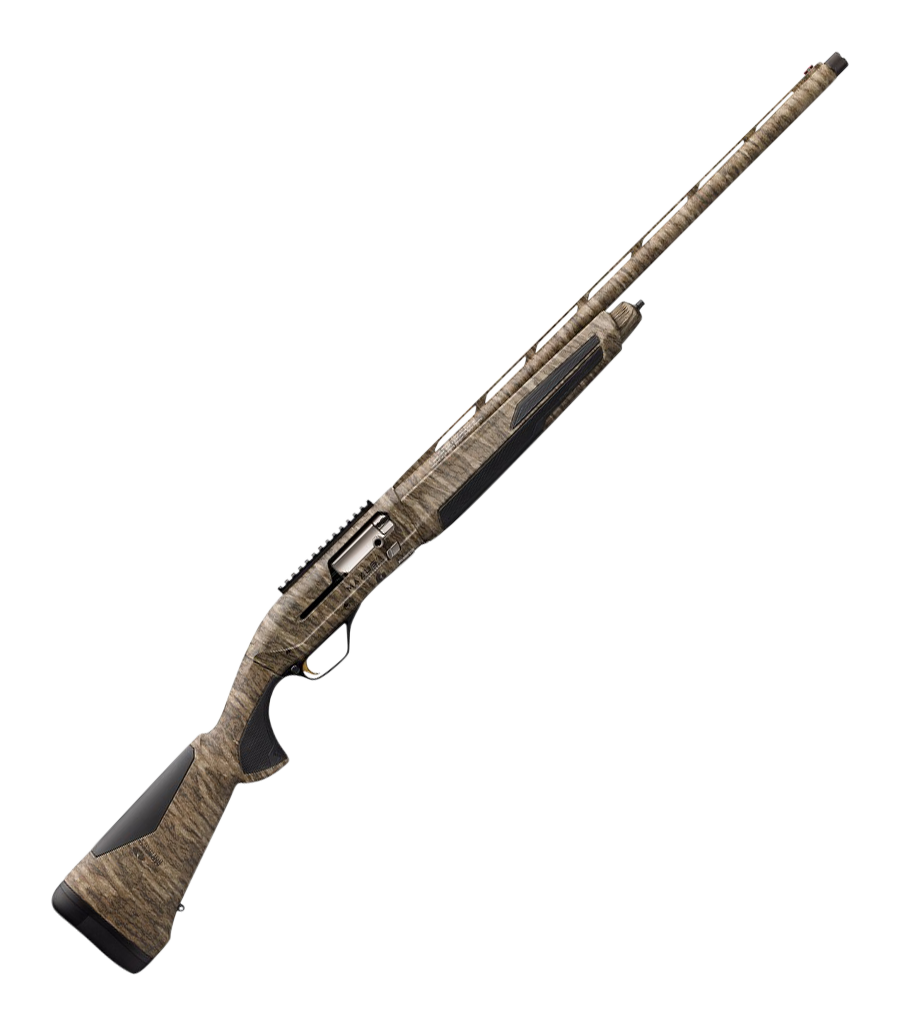 Living up to its "All-Purpose" name, the Browning® Maxus II All-Purpose Hunter Semi-Auto Shotgun is everything you want for waterfowl, pheasant, turkey and more. The Mossy Oak® Bottomland® camo virtually disappears into the scenery in most environments, but it's what's inside that makes the Maxus II so special. The perfectly tuned Power Drive Gas System was designed to improve reliability across the entire spectrum – from light target loads to heavy 3.5" magnums – while reducing recoil. The Maxus also features the Lightning Trigger with the fastest lock time of any semi-auto in its class, delivering the speed you need when the birds are thick. And like all Maxus shotguns, the Maxus II All-Purpose provides comfortable ergonomics, trim dimensions, and superb balance. And true to its "All-Purpose" moniker, this model comes with an extended X-Full Turkey choke in addition to 3 extended Invector-Plus tubes (F, M, IC). Receiver comes drilled and tapped for a Picatinny-style scope base. SoftFlex cheek piece and 1-1/2" Inflex II recoil pad help reduce felt recoil. Synthetic stock and forend with overmolded rubber panels for grip in all conditions. Stock is shim-adjustable for cast, drop, and length of pull. Fiber-optic front sight and ivory mid-bead.