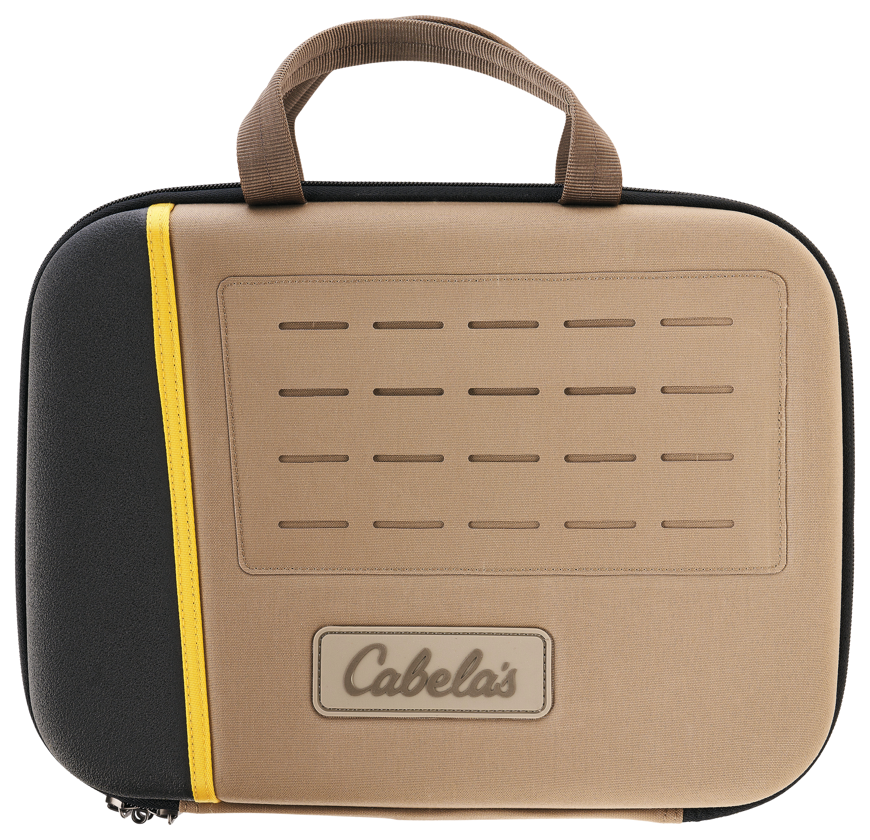Made from advanced molded EVA and 500-denier nylon, our Cabela's® Elite Series Pistol Case provides storage and organization for 2 pistols and plenty of magazines. 4 Velcro® detachable pistol tie-downs and 4 Velcro detachable magazine pouches keep your handguns neatly organized, and a laser-cut MOLLE panel provides extra attachment points. It's handgun storage made simple. Full-length dual zipper is padlock compatible. Tubular nylon padded handles. High-quality brushed tricot interior lining is soft on finishes. 14"L x 10"W.