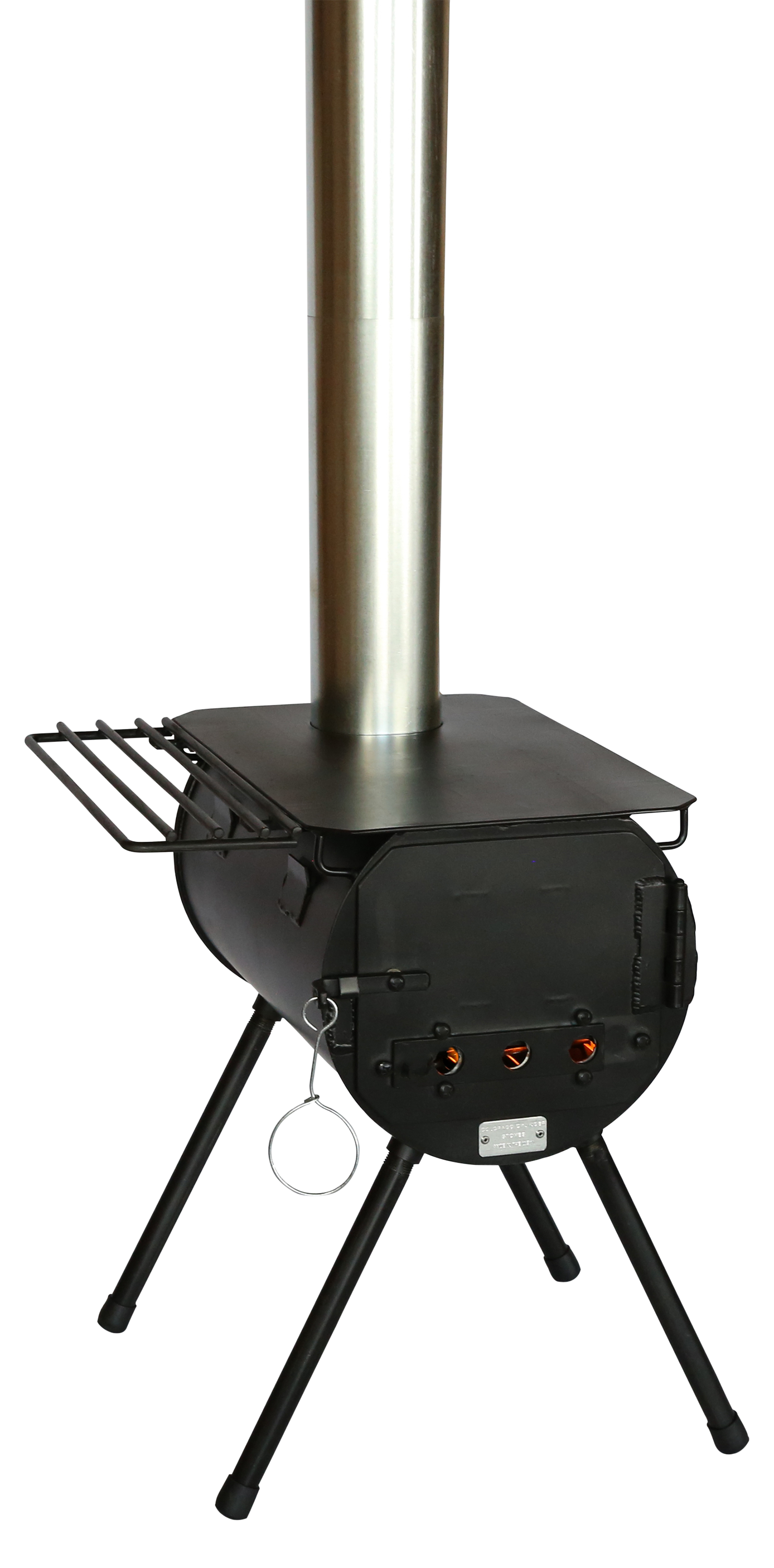 Keep your wall tent warm and comfortable with the Colorado Cylinder Stoves® Mesa Stove Package. 10- and 12-gauge steel construction ensures durability, plus the stovetop and door are reinforced with 1"x1" angle iron to eliminate warping when burning high-heat fuel like coal. The heavy-duty steel construction allows this tent stove to retain heat for more radiant warmth, maximizing the heating area as well as performing well in frigid temperatures. The top doubles as a cook surface, and its overall compact design with all accessories packing inside, means this wood stove is easy to store and transport. A coal grate keeps your fire off the bottom of the stove, extending your stove's life. Also includes a warming tray, mesh spark arrestor for safety, and legs.