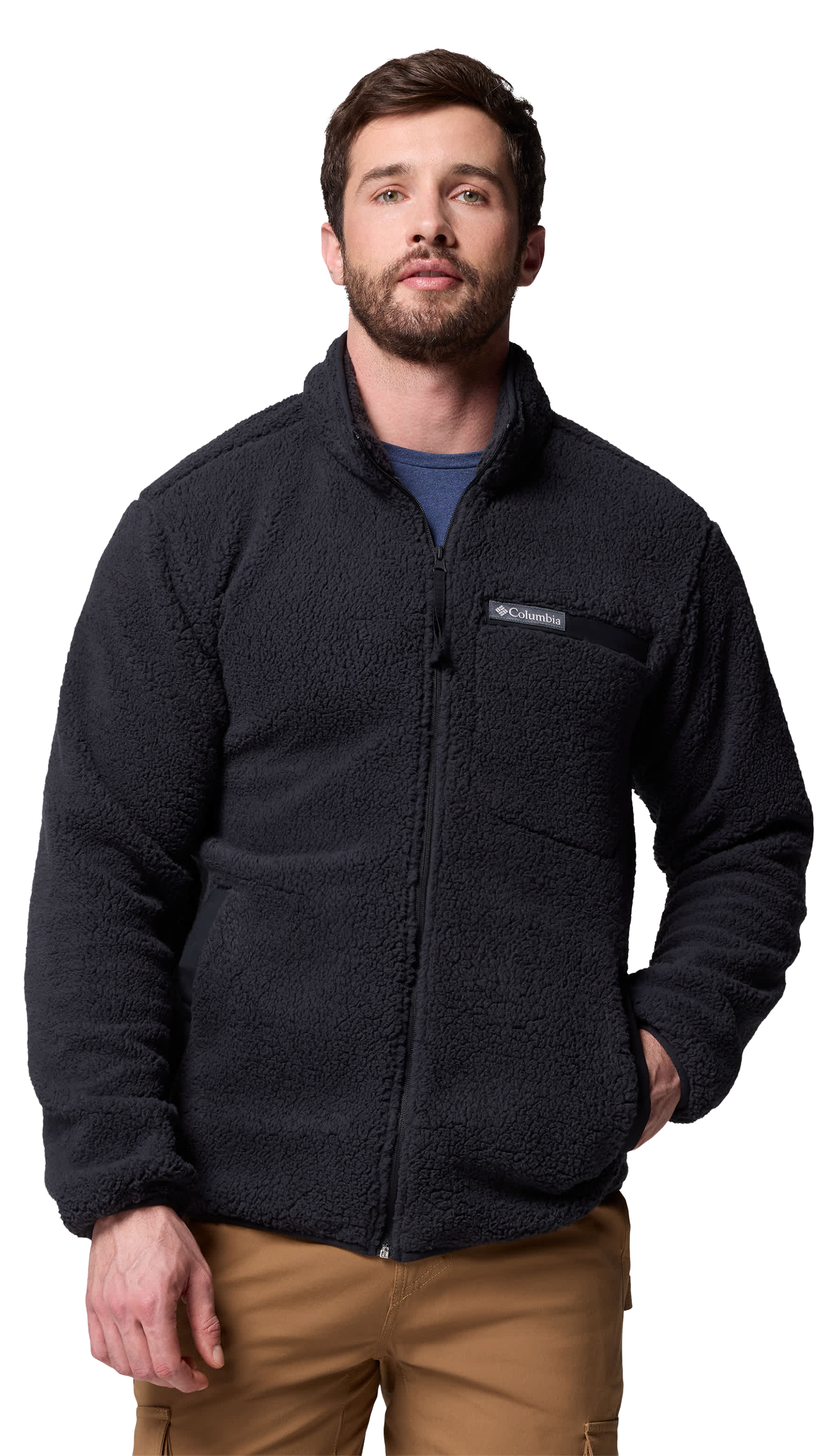 Find plenty of warmth and style in the Columbia® Rugged Ridge™ High-Pile Full-Zip Jacket. Supersoft high-pile fleece makes this Columbia jacket a perfect layer for brisk mornings and chilly evenings, while the full-zip design offers easy on-and-off and customizable comfort. This men's jacket also boasts zip-close hand pockets and chest pocket for secure storage. Stretch binding at the collar, cuffs, and hem. Shell is 100% recycled polyester, while the trim is 100% nylon. Machine wash. Imported. Manufacturer style #: 2135481.