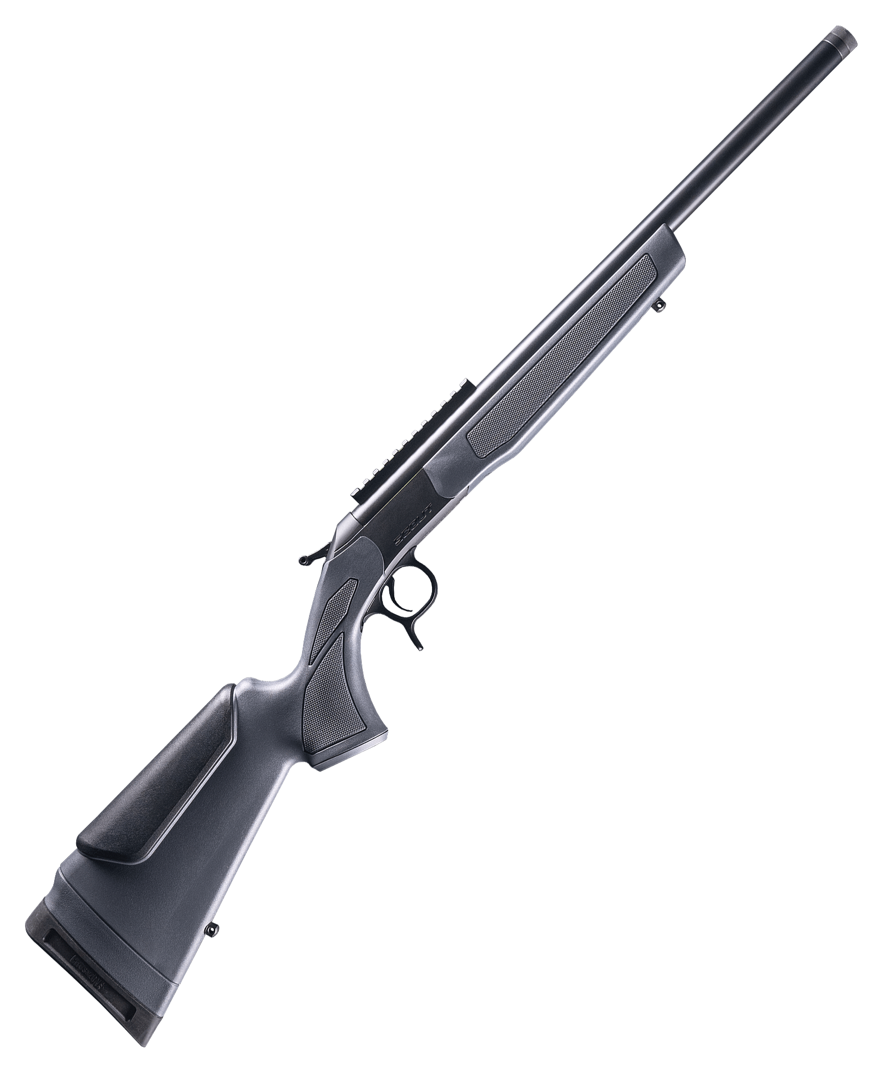 Simplicity and accuracy come together to create the CVA® Scout Single-Shot Centerfire Rifle with Threaded Barrel. Improved ergonomics and easy fit adjustments deliver superior performance for shooters of all sizes and experience levels. The barrel features a threaded muzzle to accept a muzzle brake or suppressor. The stock features a 1" spacer that can be removed to fit younger or smaller-framed shooters along with an adjustable comb height for proper scope alignment. The hammer is reversible to accommodate righties or lefties. The Picatinny optics base provides versatility in scope placement.