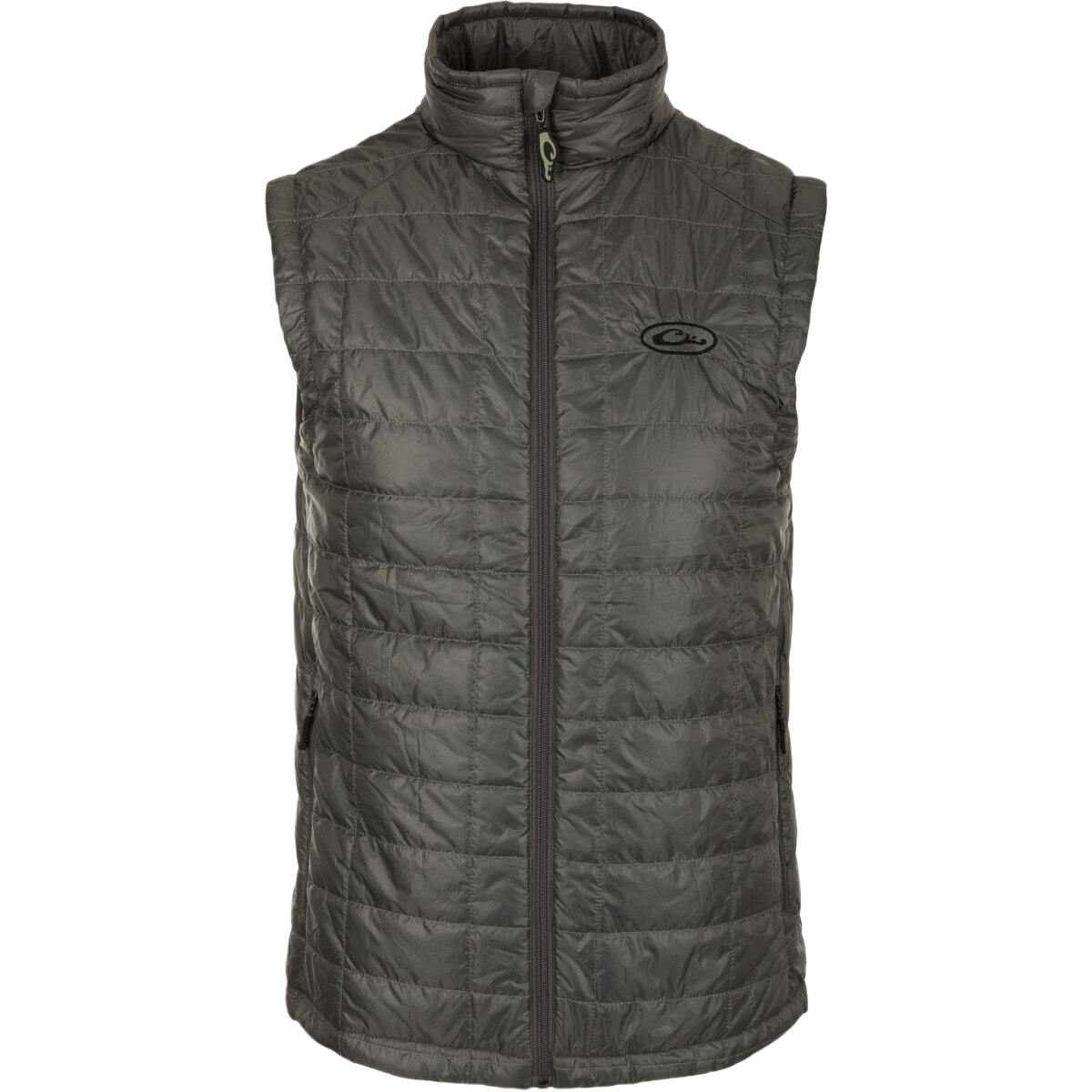 Don't let the light weight fool you - the Synthetic Down Vest is incredibly warm and extremely versatile. The vest is also PACKABLE and zips into the internal chest pocket, making it the perfect size for storing in a backpack or in your vehicle. Wear it alone as an outer layer, or under your waterproof outerwear when you need extra insulation. Drake used synthetic down insulation when designing this vest because it offers light weight, uniform loft throughout the garment, and it won't mat down like natural down.