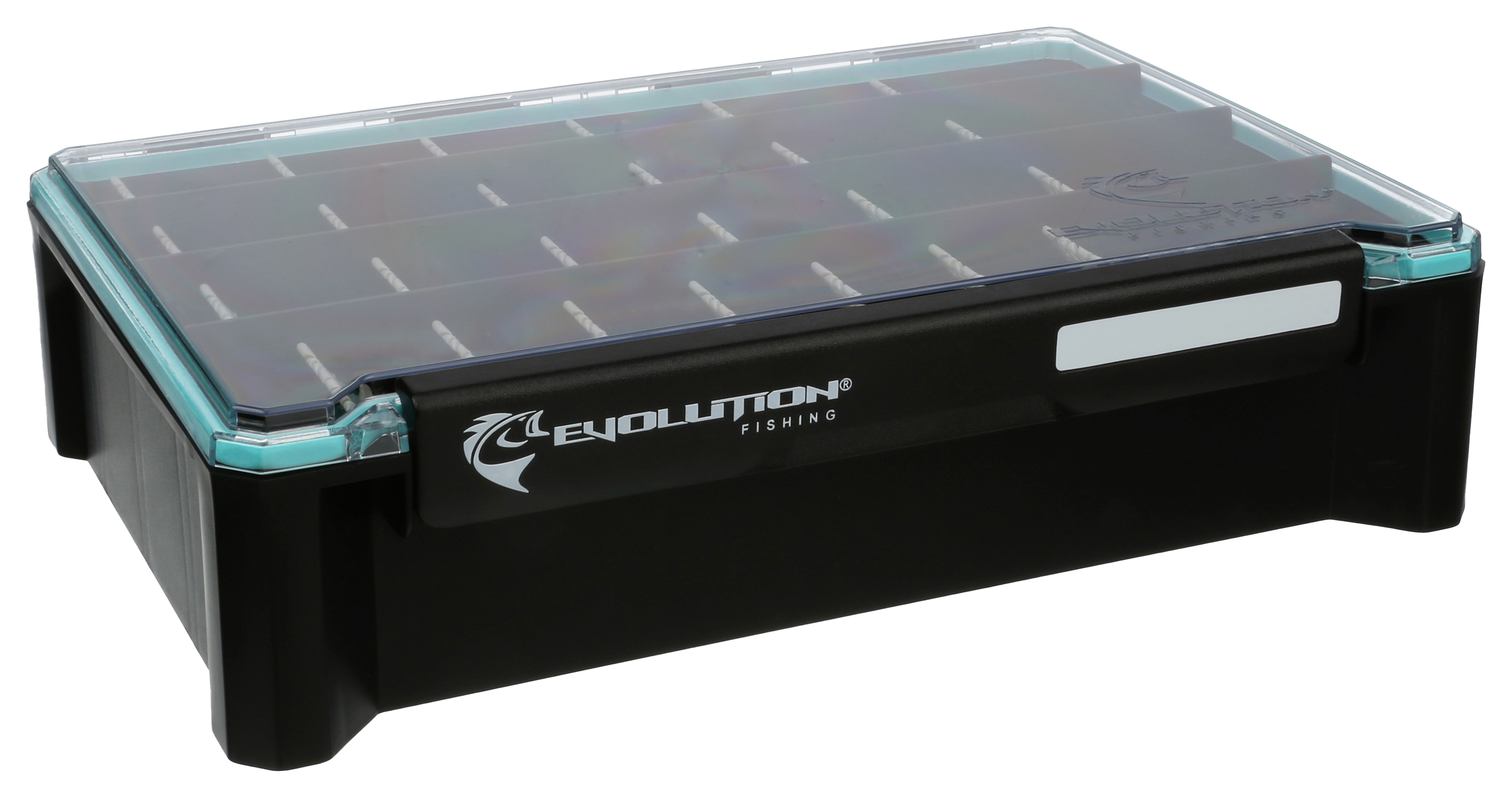 Finally, there's a tackle solution organization system that makes sense: the Evolution Fishing® Ballistix Hangr Utility Box. It maximizes bait capacity, and at the same time, it virtually eliminates the pain of having to untangle sharp baits. The Hangr's notched divider securely holds spinnerbaits, buzzbaits, bladed jigs and even treble hooked baits in place. Plus, the Snap-N-Lock angled divider system locks them in with a snap, and this system stores baits at an angle for even more storage capacity. This container comes equipped with a highly durable and bulked outer design. This rugged exterior shrugs off punishing treatment and harsh fishing conditions. The lid's oversized gasketed and watertight seal combines with X-Rust Corrosion and Rust-Preventive technology, to protect your gear in wet and rainy conditions. This tackle box from Evolution Fishing has a labeled single latch for quick and easy lure identification.