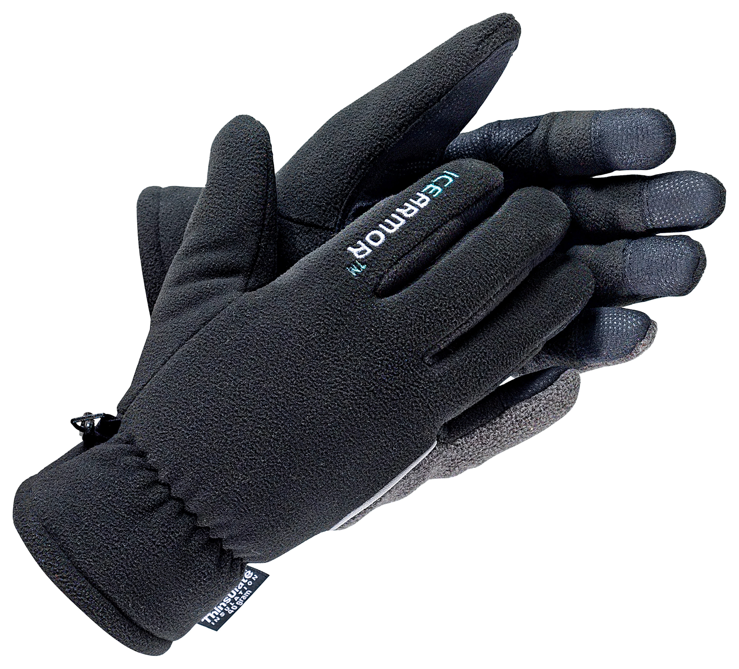 These IceArmor® by Clam Casual Fleece Gloves for Men are loaded with protective features that make any weather bearable. Made with micro fleece, these mens' gloves are laminated with a windproof, breathable membrane. C40 Thinsulate insulation adds a layer of warmth while the Amara palm and fingertip reinforcements ensure a firm grip. Elastic wrists seal out wind and cold. Color: Black. Imported.