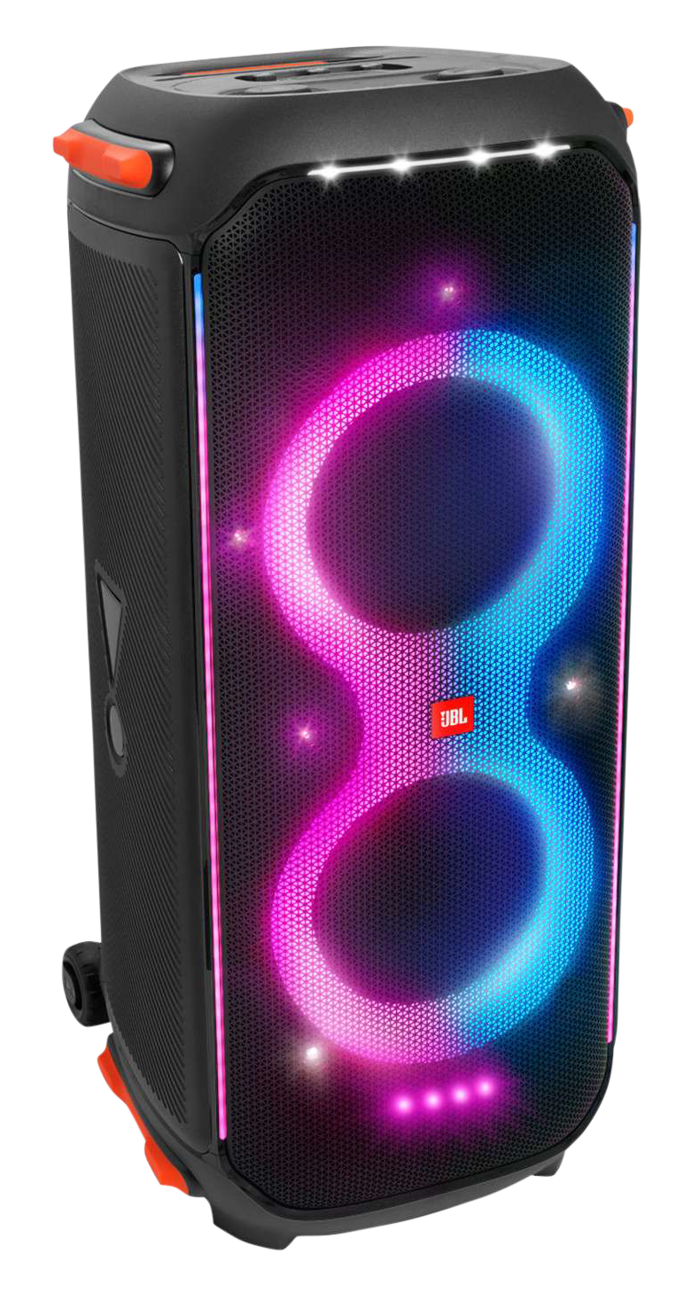 The splashproof JBL® by Harman PartyBox 710 Bluetooth LED Speaker transforms your next event into a real party. With its unique, colorful light show synced to JBL Original Pro Sound, this speaker adds visual appeal to your acoustic endeavors. Minimalistic and intuitive top panel controls and the PartyBox App let you create next-level musical and visual experiences with ease, customizing both the flashing, strobe lights, and the amazing sound from the dual set of tweeters and bass-rich woofers. 1-button True Wireless Sound instantly pairs 2 PartyBox 710s for an even bigger crowd. With an easy-to-grip handle and robust wheels, you can keep the good times rolling wherever the party goes.