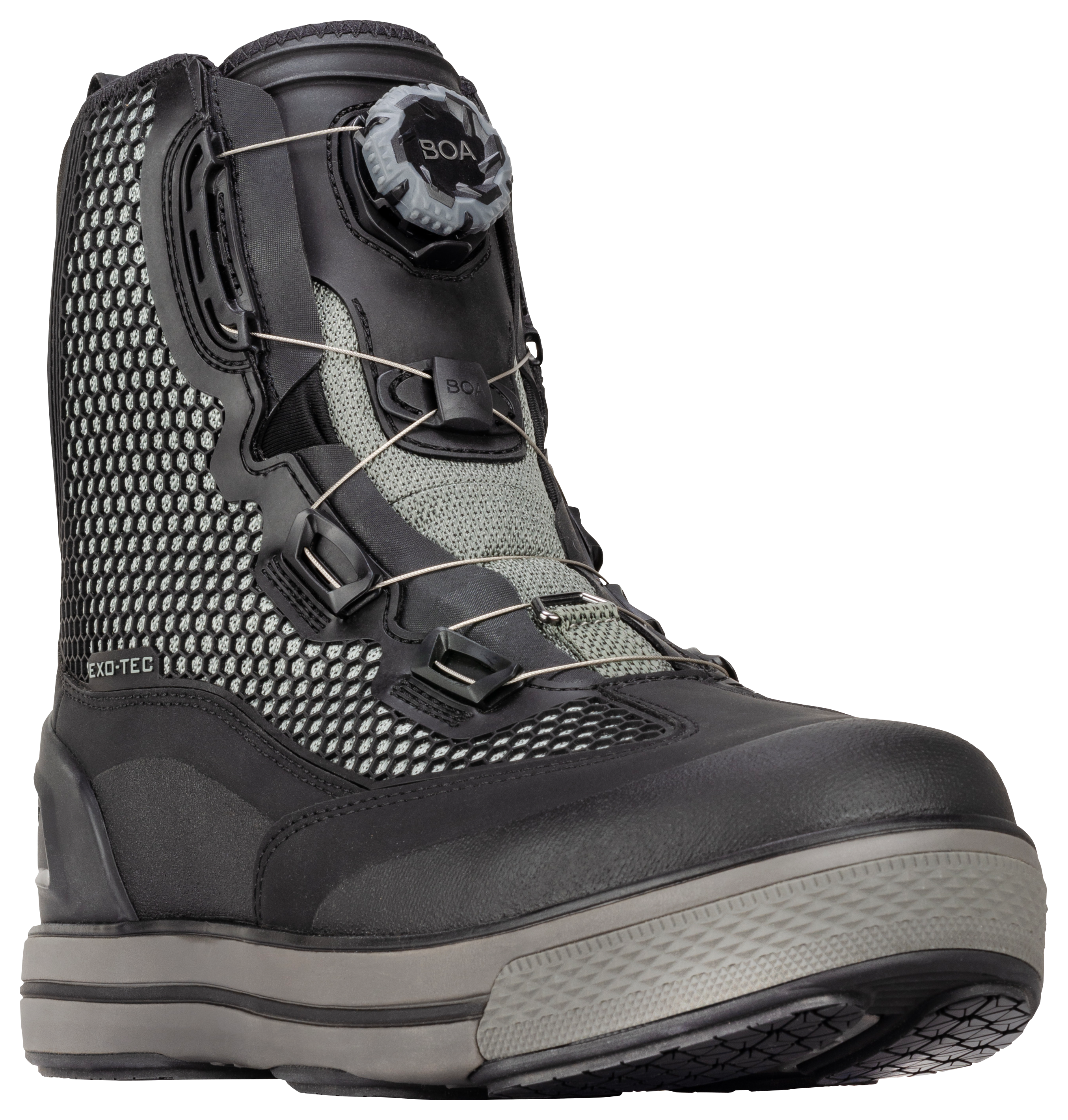 Incredibly light, low profile, and nimble, Chrome Lite™ BOA Wading Boots for Men from Korkers® gives anglers protection that's light as a feather and tough as nails. Inspired by athletic sneakers, the Chrome Lite gives anglers superior protection and mobility in the water. Fast drying and protective, the Chrome Lite's uppers surround hydrophobic synthetic fabric with an abrasion-resistant Exo-Tec™ exo-skeleton for great protection from a flexible, hyper-light package. This advanced upper also features an internal stretch ankle wrap cuff to give the boot a form-fitting flexible fit, supreme comfort, and agile flexibility. A specialized design you operate with just 1 hand, the boots' BOA M4 Fit System with M4 ratcheting dial delivers a sure fit without pressure points and less surface than traditional laces for debris and organisms to latch onto. The integrated drainage system in the boots' EVA midsoles features large ports and internal channels to drain water from the boot quickly, keeping the boots' weight down. The boots' lightweight and flexible Kling-On Rock™ outsoles deliver a solid grip on dry or wet rock. Avg. Ht. Per Pair: 8.5". Avg. Wt. Per Pair: 2.6 lbs. Manufacturer style #: FB9100.