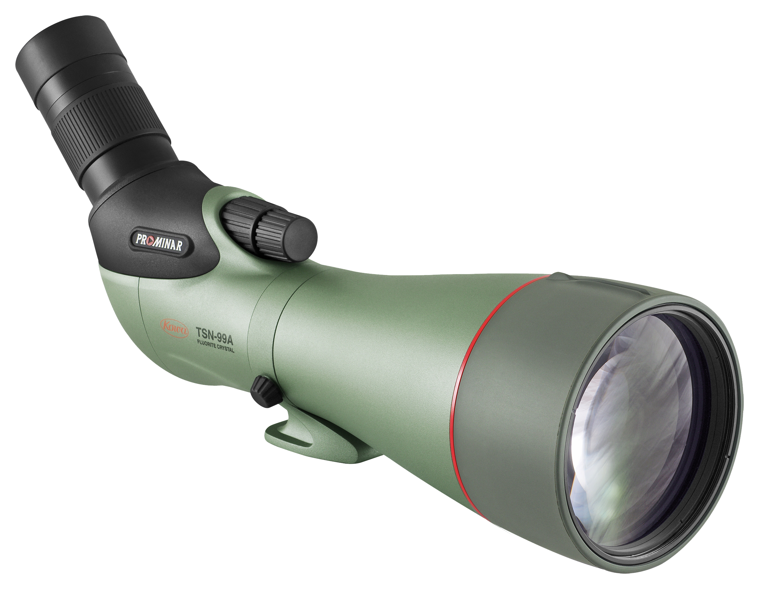 Backed by 70 years of Japanese optical excellence, the Kowa® TSN-99 Prominar Angled Spotting Scope delivers stunning image quality that has to be seen to be believed. It starts with a large, 99mm pure fluorite crystal objective lens paired with Kowa's XD concave lens, which produces second-to-none low-light performance and exquisite detail. This combination of elements combined with Kowa's enhanced optical coatings virtually eliminates chromatic aberration – even at the highest magnification. Protecting the TSN-99's high-performance optics is an incredibly strong-yet-lightweight magnesium alloy chassis. Magnesium alloy delivers all the strength of metal without the unnecessary weight. Kowa's unique KR coating actively repels dirt, moisture, and dust from the surface – so you can count on it to perform in bad weather. The TSN-99 also features Kowa's dual-focus system, giving you a higher degree of control between the image and your eye. As a bonus, the TSN-99 features an easy-access collar for quick transformation into a telephoto lens system, and Kowa offers a full range of digiscoping accessories.