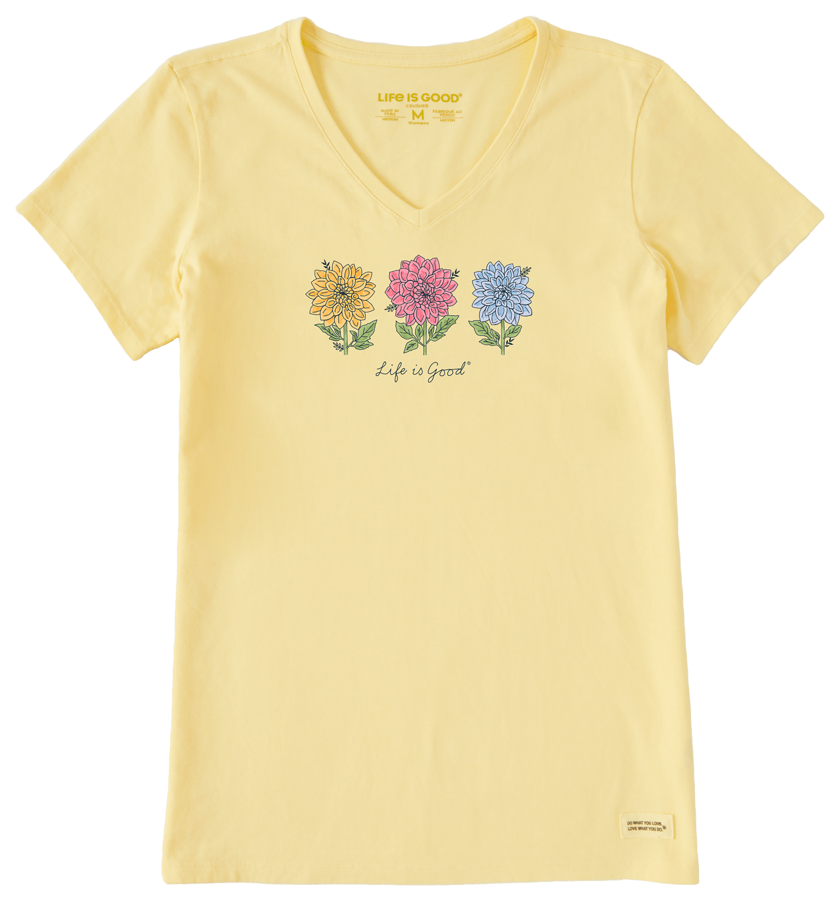 Life is Good Genuine 3 Dahlias Crusher-LITE V-Neck Short-Sleeve T-Shirt for Ladies