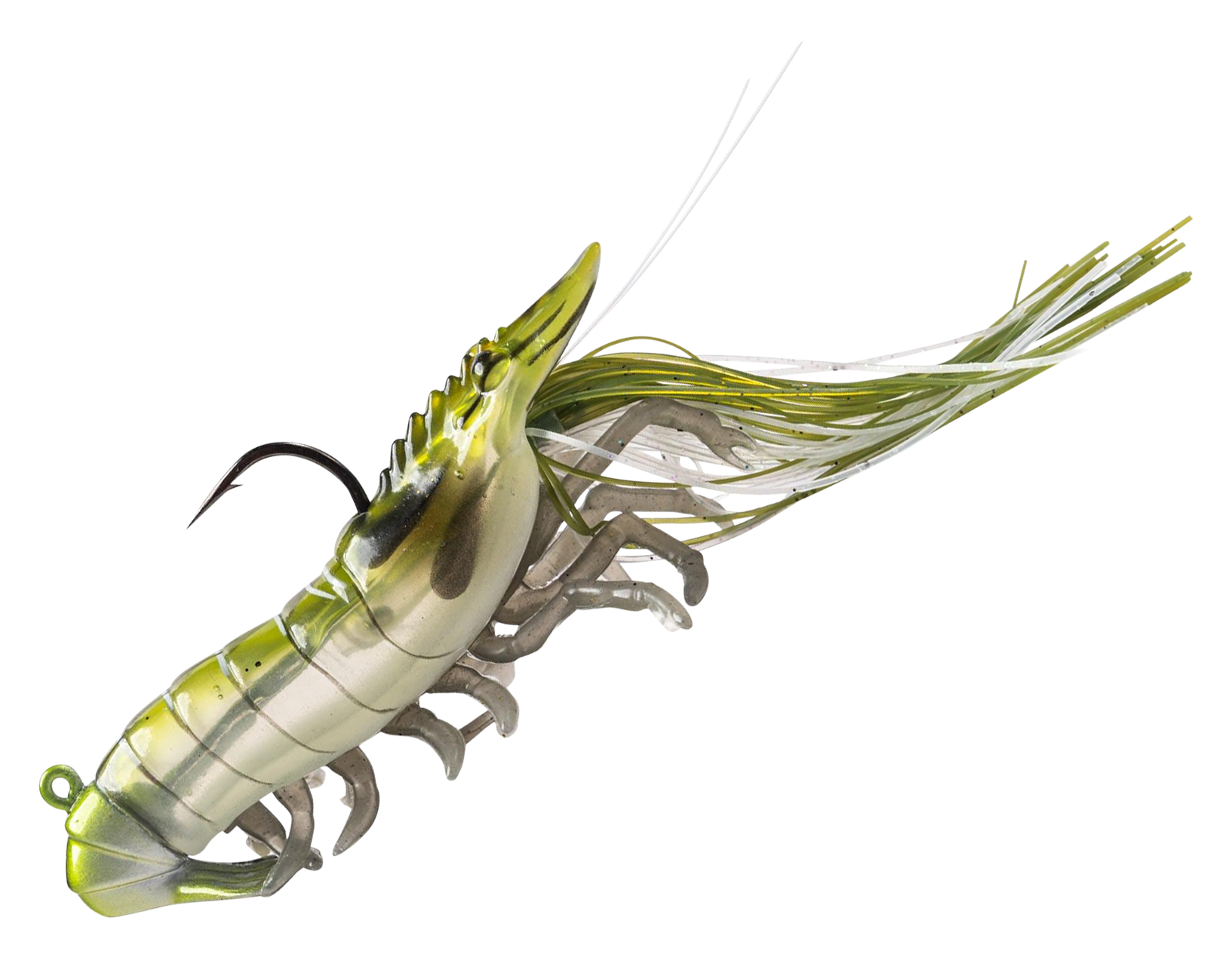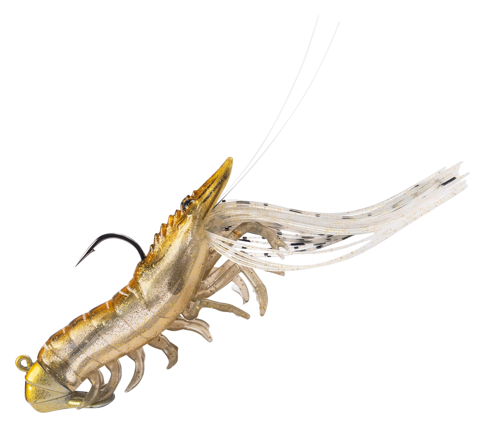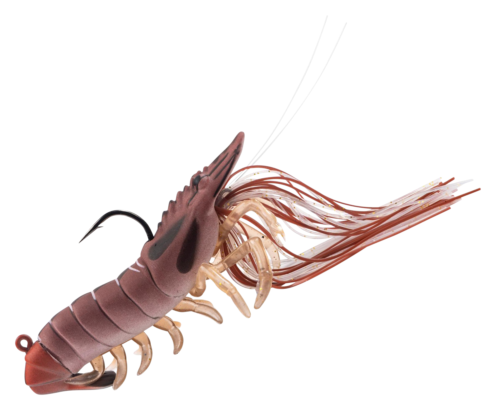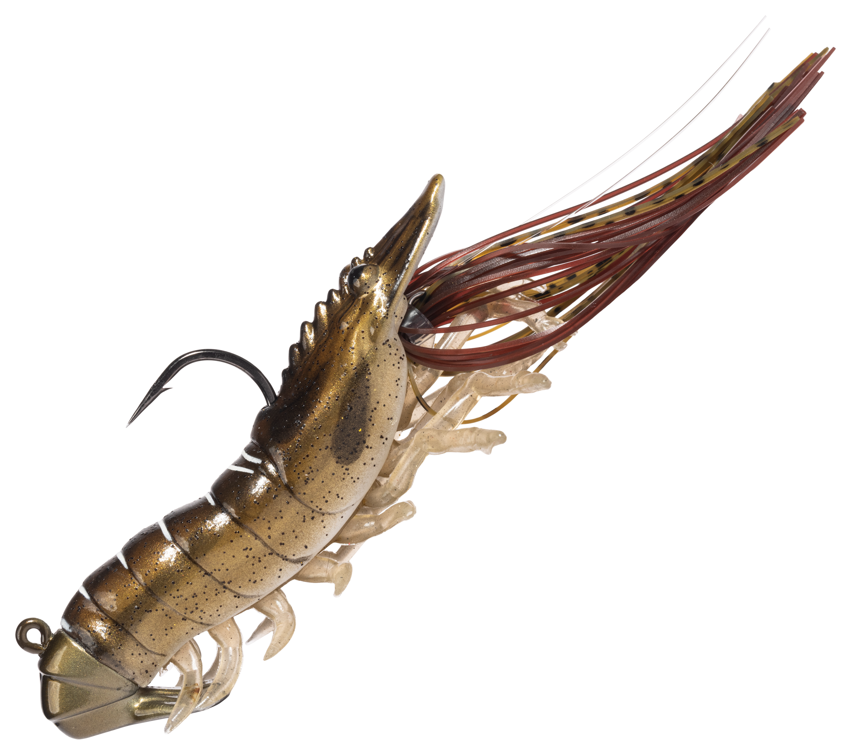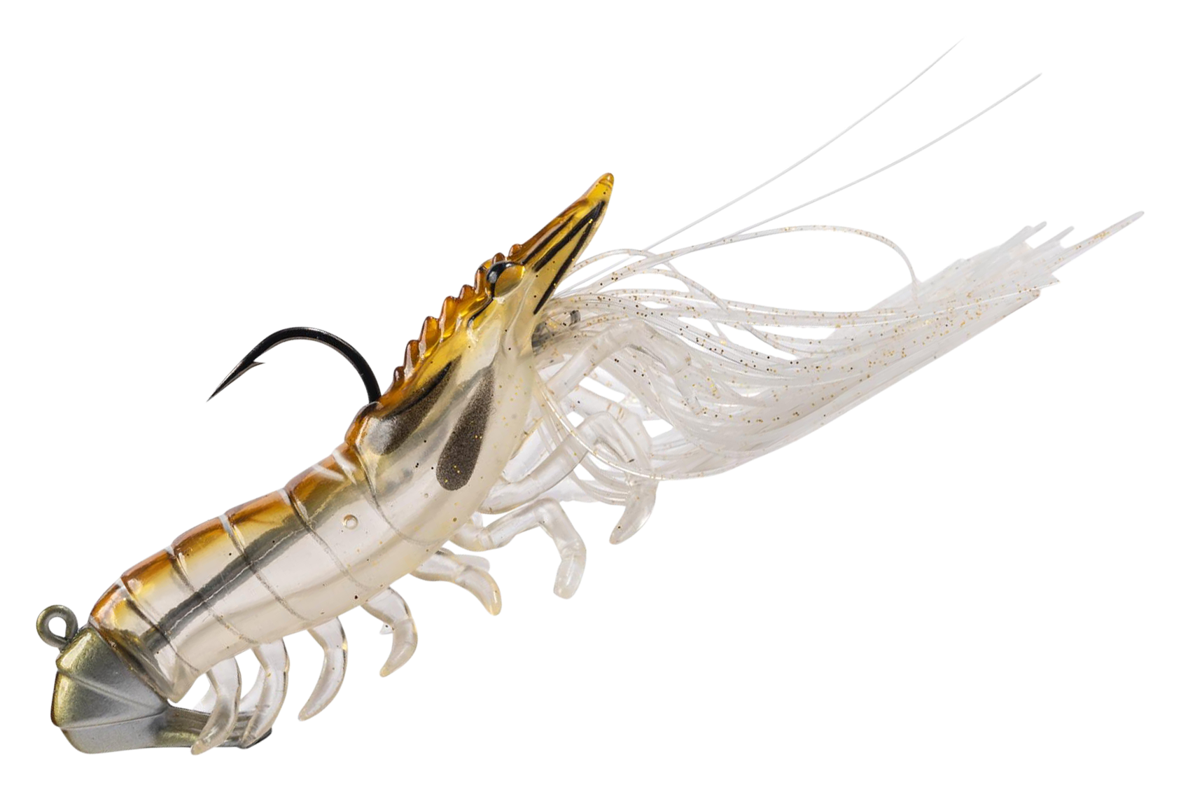 Built for inshore action, the LIVETARGET® Hollow Body Shrimp delivers lifelike realism that saltwater predators can't resist. From its anatomically accurate profile to its soft PVC legs and hollow body, this bait mimics the look, feel, and movement of a live shrimp. The integrated glass rattle chamber adds subtle sound to draw attention, while the custom UV/pearl finish enhances visibility in any water conditions. Whether you're working this LIVETARGET shrimp under a popping cork or casting a steady retrieve, this shrimp lure produces natural action that triggers strikes from redfish, snook, speckled trout, and more. Pre-rigged with a premium Mustad® UltraPoint™ hook. Painted eyes.