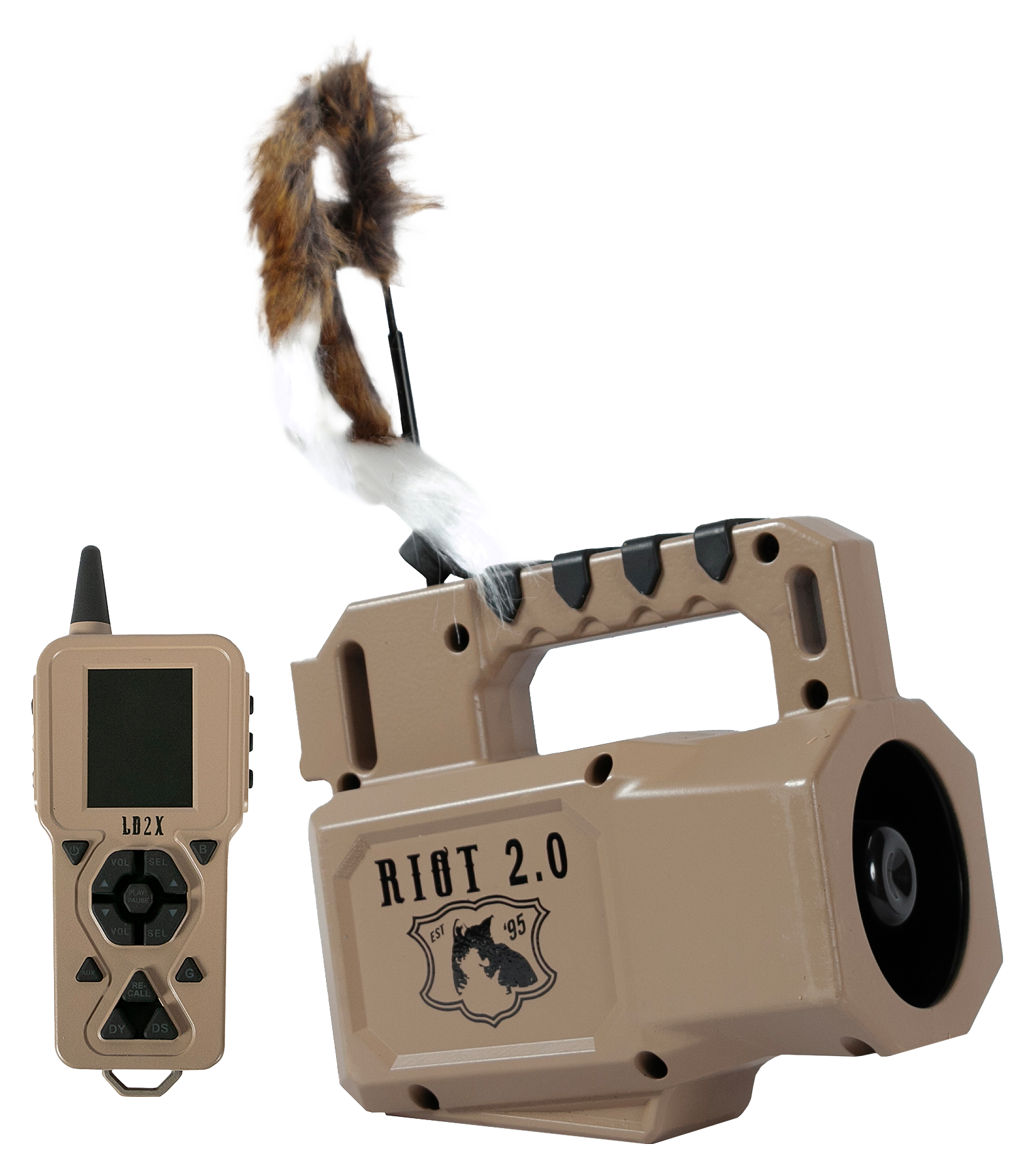 A compact, high-performance electronic call system, the Lucky Duck® Riot 2.0 Electronic Predator Call System combines superior sound with a motorized decoy in a portable package. Enclosed in a durable, upgraded housing, this predator call system features a high-output speaker to reach out to far away predators. An integrated 3-speed motorized decoy moves erratically while calling to spur predators' curiosity to draw them in close. Convenient decoy design easily stores on the call for easy transport. Offering the capability to hold more than 2,000 calls, the Riot 2.0 comes with 150 pre-recorded live animal sounds compiled by predator pro Rick Paillet. Its included LD2X remote features an LCD screen with day/dawn/night modes that utilize its 10 levels of brightness for easy reading at all hours of the day. The remote's extended range of 300+ yards, so those predators won't have any idea you're in the neighborhood while you call them in. Backlit buttons make low-light or nighttime operation a breeze. Runs on 10 AA batteries (not included). Remote runs on 3 AA batteries (not included). Compatible with Lucky Duck's rechargeable lithium-ion polymer battery pack 2.0 (not included). Threaded mount on bottom for tripod attachment (tripod not included). Mfrs. 5-year warranty.