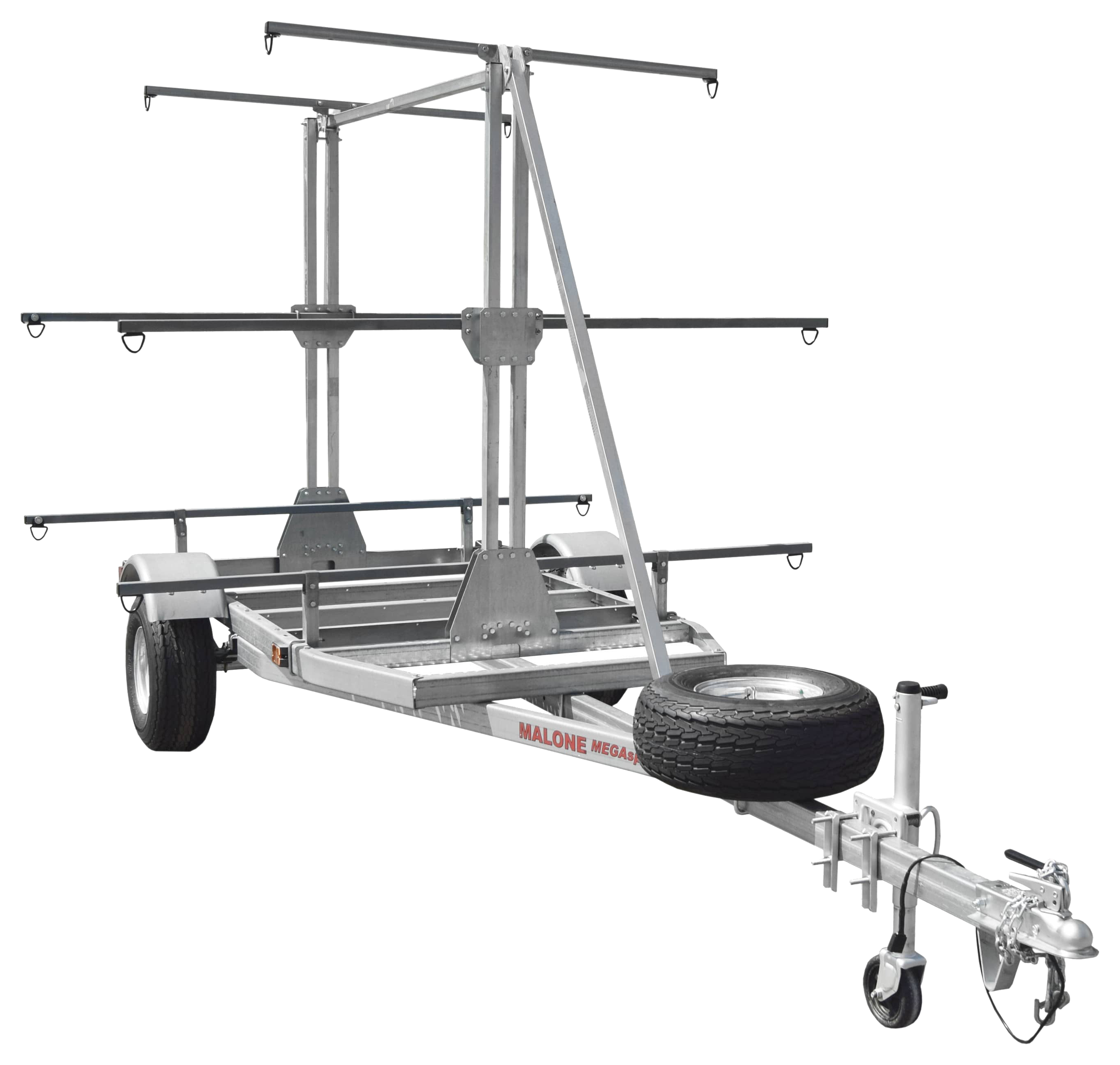 If you need to transport a lot of kayaks at once, the Malone® MegaSport™ Outfitter 3-Tier Trailer is built for the task. Its heavy-duty, marine-grade 11-gauge galvanized steel construction delivers the strength needed for big loads. High-speed wheels and tires move your loads safely on highways and country roads, alike. The 3-tier kayak trailer has a 1,000-lb. load capacity, allowing you to haul boats and gear. This Malone kayak trailer has a heavy-duty leaf-spring suspension system and the axle is rated to 2,000-lbs. 2" hitch and standard electrical connector. Crank-style jack stand with a wheel for easy maneuverability and handling. Includes a full-size spare tire. Mfrs. limited 5-year warranty.