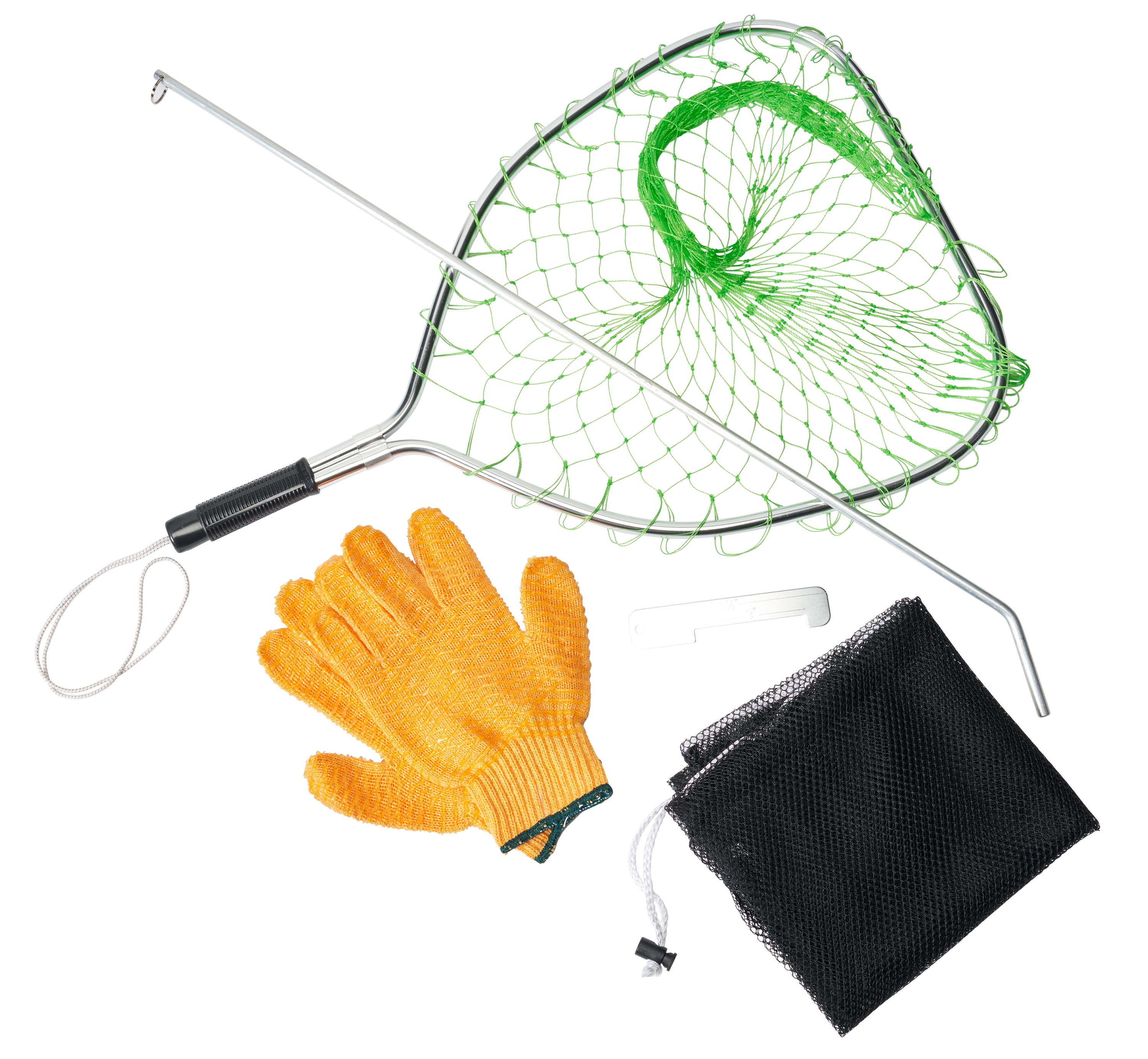 With the Marine Sports Deluxe Lobster Kit, you get all the tools you need to swim into the surf and start collecting ocean-fresh lobsters for dinner. While you're swimming, you'll have a 34" aluminum Tickle Stick to safely poke and prod lobsters out of their hiding places among the rocks and reef. When your prey pops out into the open, this lobster diving kit from Marine Sports supplies you with a lobster net with elastic wrist bungee to catch your crustaceans and orange grip gloves to safely handle them. At this point, you'll use the aluminum lobster gauge to make sure your catch is of legal size, and when it is, you'll stuff it into the drawstring mesh bag (30"L x 18"W) with lock drawstring to keep them contained.