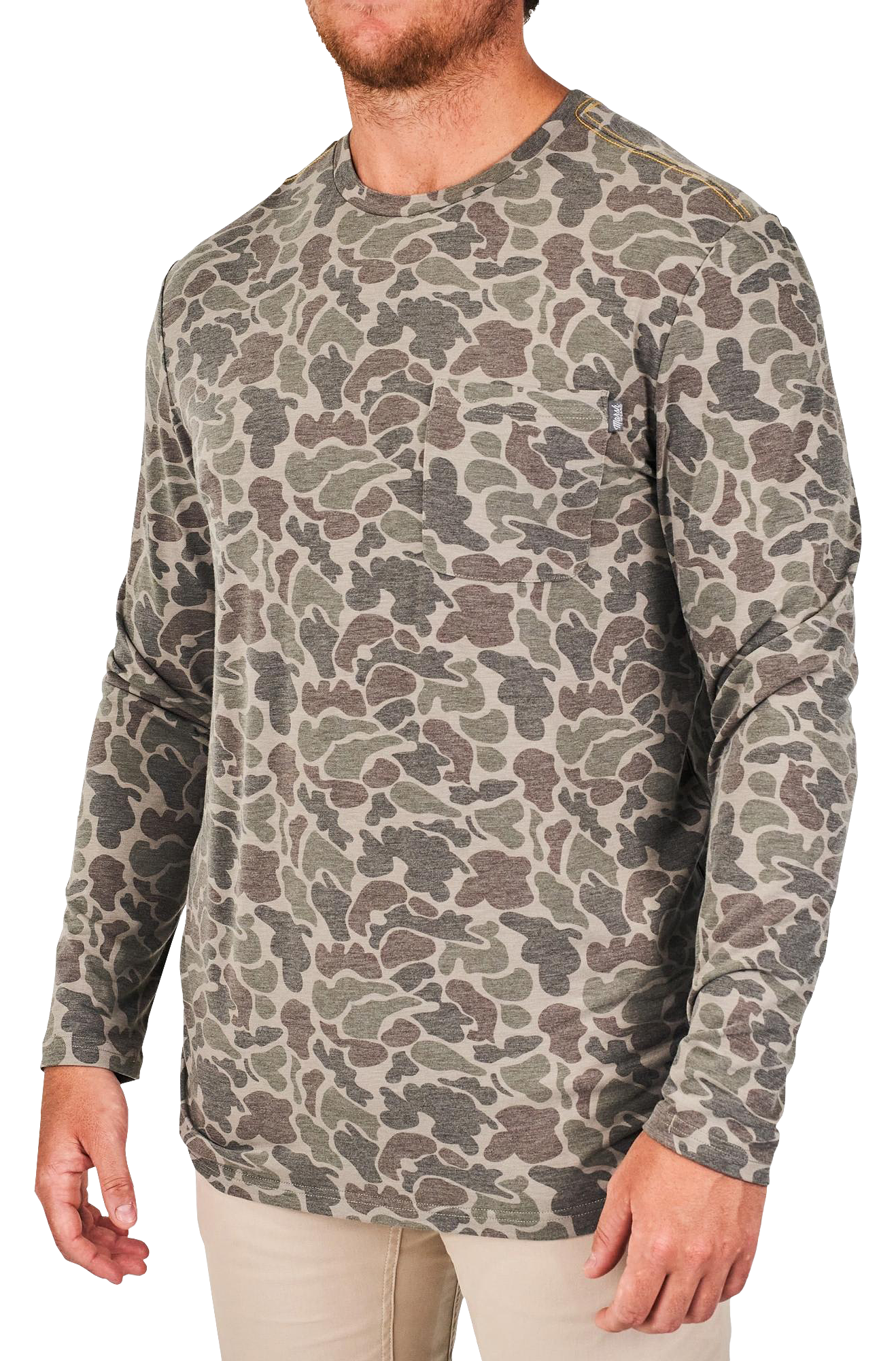 The Marsh Wear® Buxton Long-Sleeve Performance Crew for Men is a best seller that's been updated to be even better. This supersoft, moisture-wicking Pamlico men's shirts is eco-friendly it's made, in large part, out of Repreve® recycled polyester. Perfect for sunny days and duck hunting, this Marsh Wear came shirt boasts a UPF 40 sun protection rating and Marsh Wear's mallard camo. The Buxton comes equipped with a durable water-repellent (DWR) finish to keep you dry in light rains. Stain resistance keeps shirt looking like new. Thumb loops and a woven damask flag label. Made of 65% Repreve recycled polyester/35% rayon. Machine wash. Imported. Manufacturer style #: MWK2038.