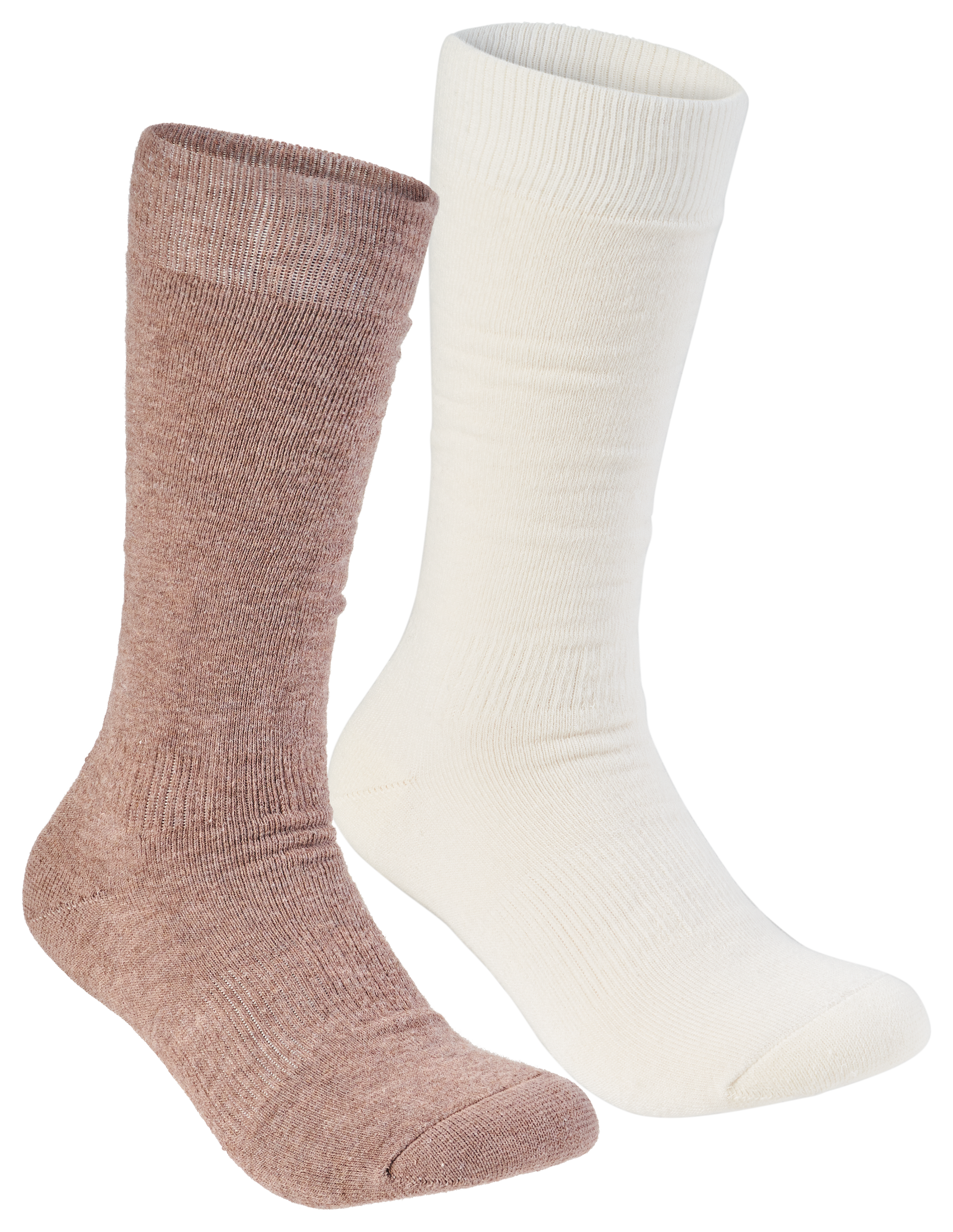 You've got the boots. Now get the socks to rock 'em – our Natural Reflections® 2-Pair Pack Boot Socks! Moisture Management moves sweat away from your skin, keeping you dry and comfortable with every step. Full cushioning plus arch and ankle support delivers unbeatable comfort you can count on all day long. Plus, reinforced heels and toes provide extra durability in high-wear areas for long-lasting performance. Elastic cuffs keep the socks in place. Fit women's shoe sizes 6–9. Includes 2 pairs of boot socks. 97% polyester/3% spandex. Machine wash. Imported.
