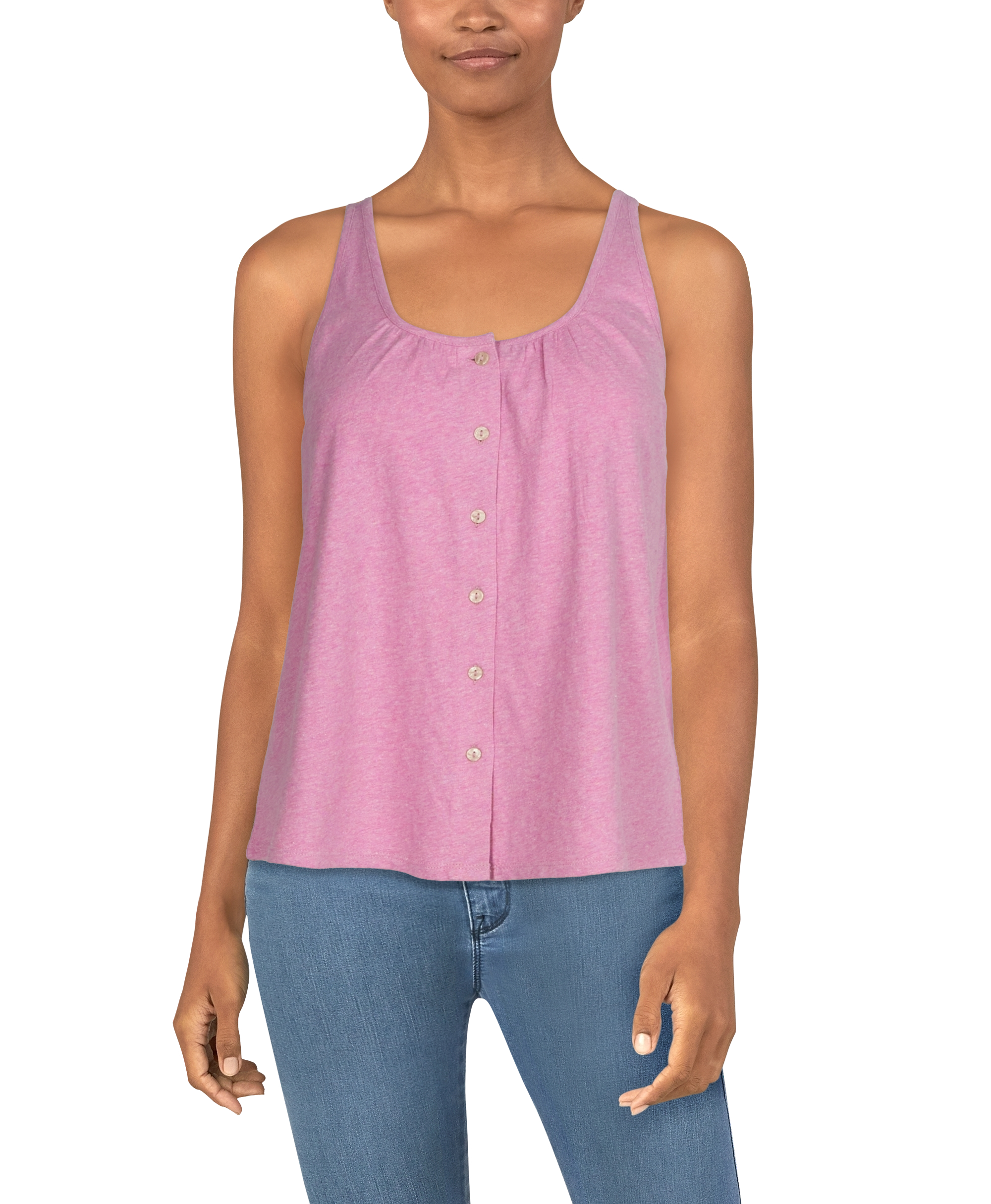 Elevate your everyday style with the Natural Reflections® Coastline Button-Down Tank Top. Ideal for warm, sunny days, this tank top has a distinctive, fashionable button placket for greater style than ordinary tank tops. Light bunching on the neck and back enhance the unique look, and the cotton/linen blend combines softness, breathability, and easy-wearing comfort. Machine wash. Imported.