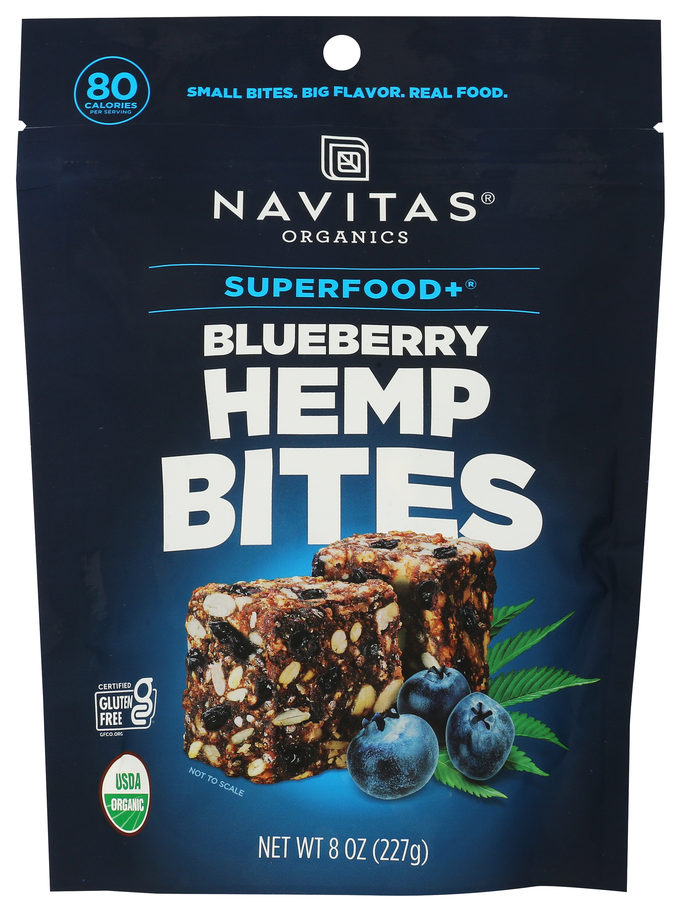 Get that blueberry muffin taste you love in a treat that delivers energy with the Navitas® Superfood Plus Blueberry Hemp Bites. Packed with fiber, antioxidants, and slow-burning sugars from dates, these whole-food energy bites deliver all the nutrients you need for outdoor adventures without any fillers, preservatives, or artificial junk. These plant-based blueberry bites are USDA Organic, non-GMO, gluten-free, dairy-free, and soy-free. Certified B Corporation. Kosher.