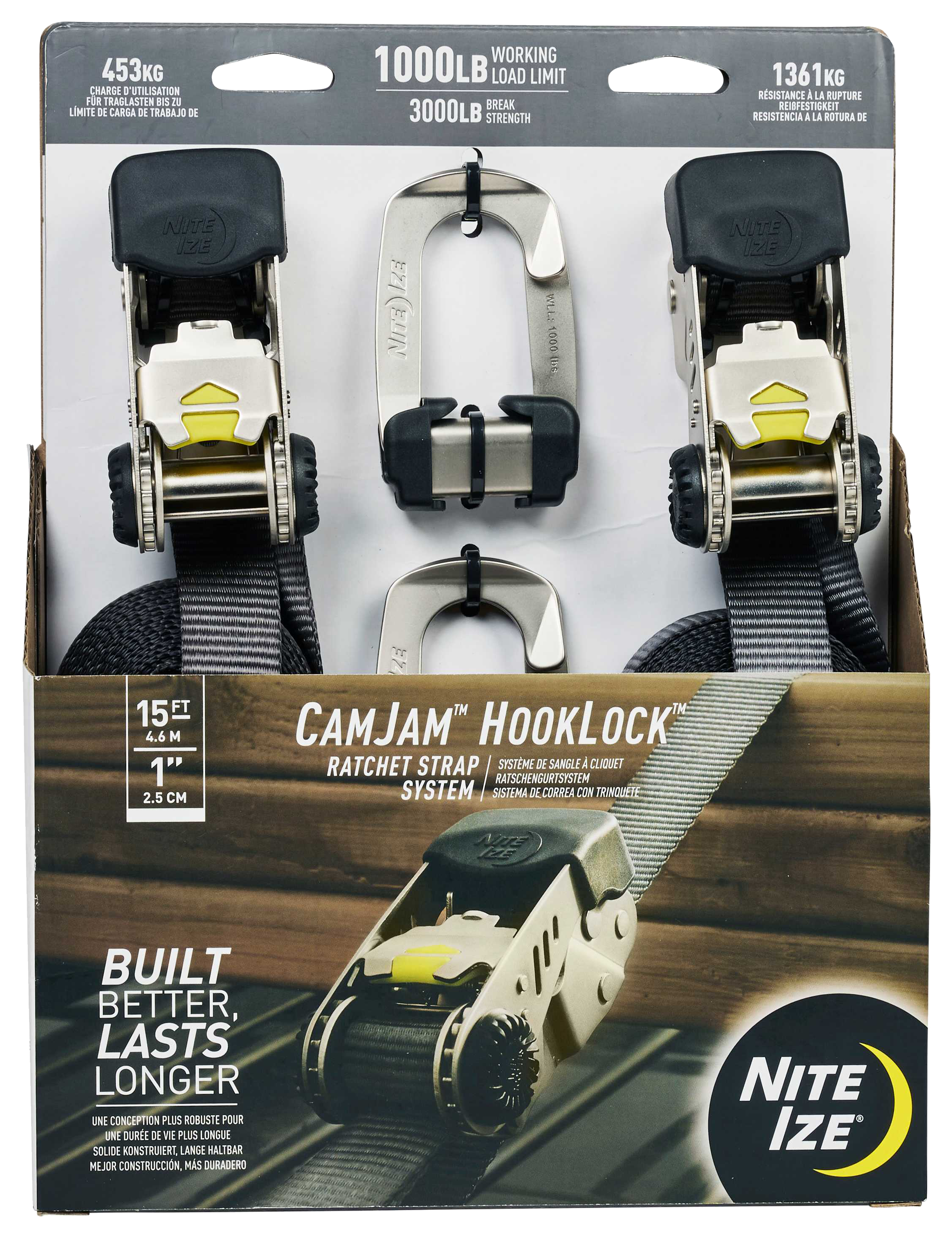 New! Nite Ize CamJam HookLock Large Ratchet Strap System 2-Pack
