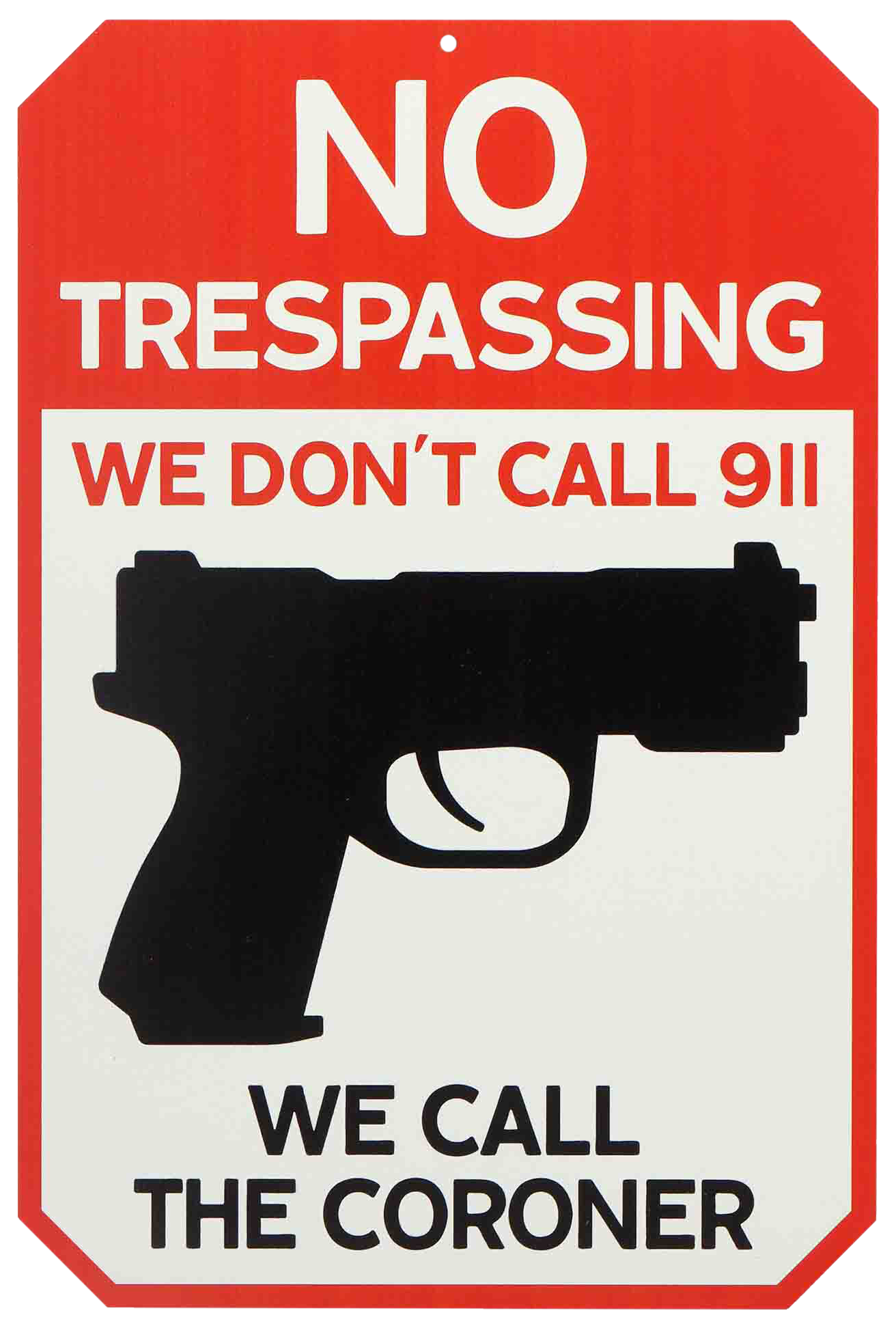 The Open Road Brands® We Don't Call 911 Metal Sign combines bold design and rugged construction. This durable, die-cut-aluminum X-metal sign has a lightweight yet sturdy finish for a modern industrial look. It's the perfect addition to garages, workshops, or man caves, or for outdoor display. 14.7"H x 9.8" W.