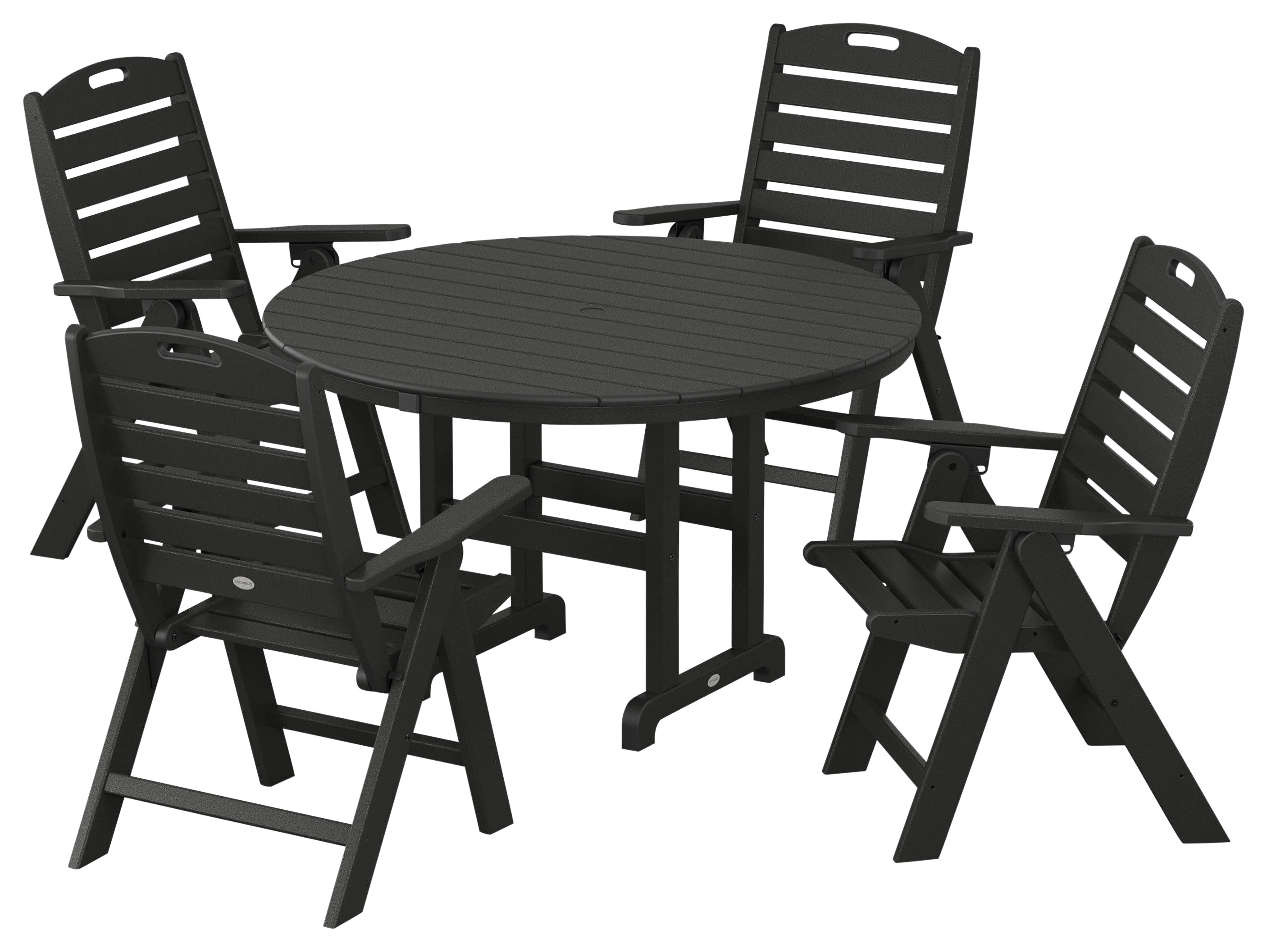 POLYWOOD Nautical Folding Chair 5-Piece Round Farmhouse Dining Set