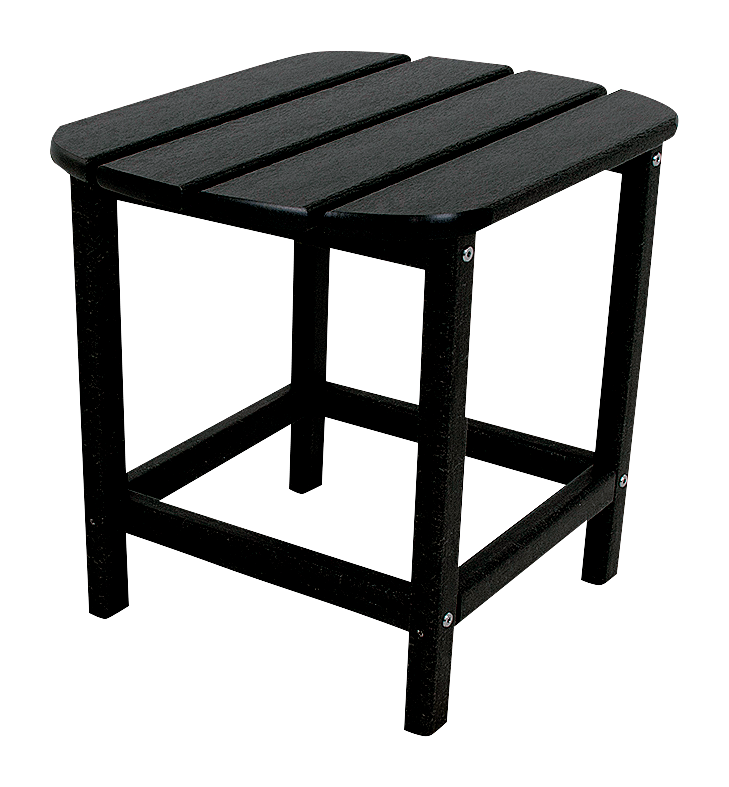 The POLYWOOD® South Beach 18" Side Table gives your outdoor decor a stylish upgrade. It's just the right size for holding snacks or drinks while you enjoy some relaxing time outdoors. Constructed of high-density polyethylene (HDPE) POLYWOOD lumber, this outdoor table provides the appearance of painted wood but without all the maintenance. No sanding, painting, waterproofing, or staining required. This solid, heavy-duty lumber does not splinter, crack, chip, peel, fade, or rot, and it resists multiple type of corrosion, including oils, salts, and weather. Eco-friendly materials are easy to clean with soap and water. Includes stainless steel hardware. 18"H x 15"W x 19"D.