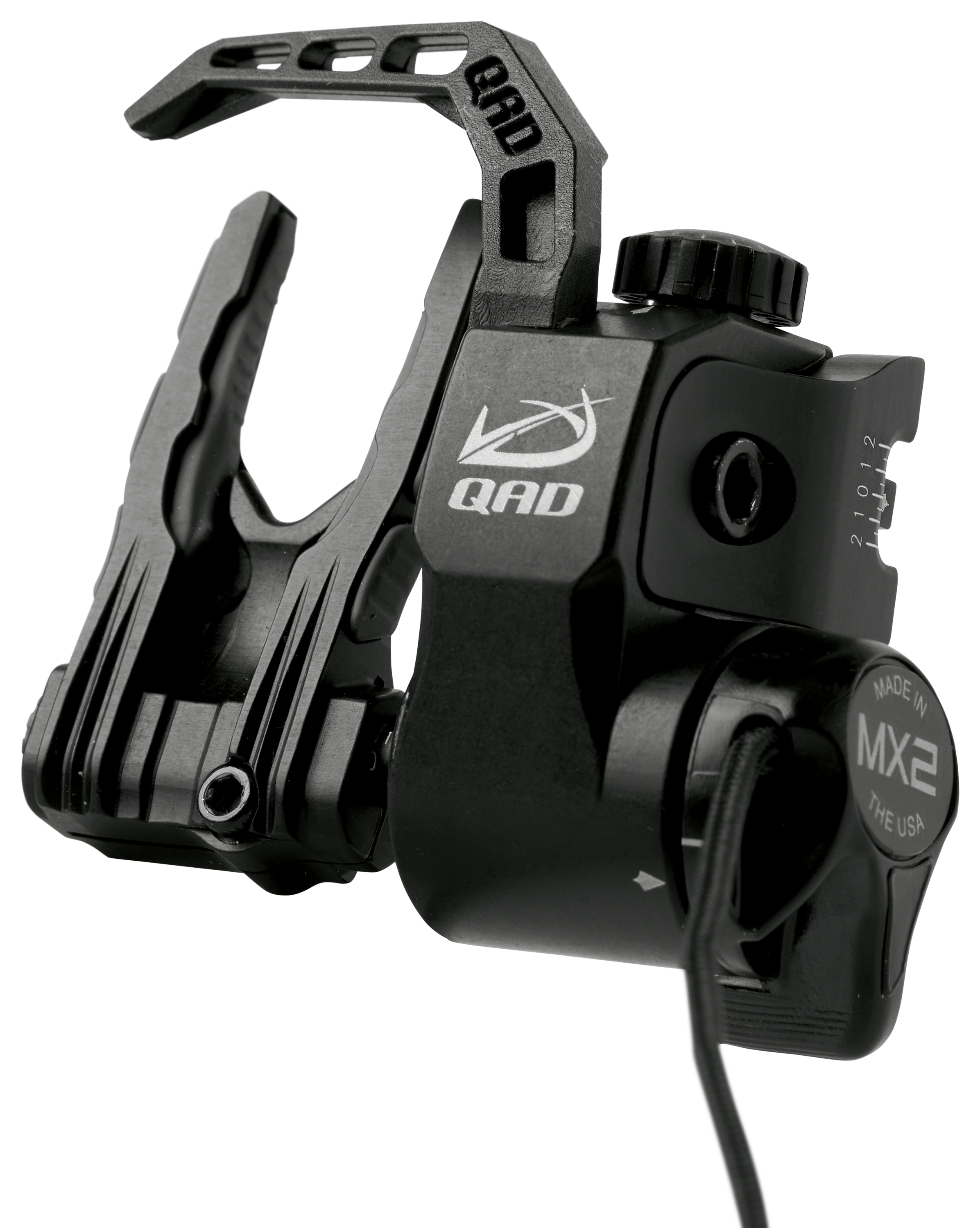 The MX rest with more, the QAD® Ultrarest® Integrate MX2 Arrow Rest gives bowhunters precision, silent performance with an integrated mount design. Outfitted with an Integrate Mounting System® mount, this rest offers a stronger hold and better feel and balance during the shot. A precision design, the Ultrarest Integrate MX2 utilizes Velocity Drop-Away Technology® to ensure the launcher falls away completely after the arrow is released to ensure total fletching clearance and the most accurate shot possible. Customizable silicone dampers and laser-cut felt in the machined 7075 aluminum launcher significantly diminish noise and vibration. Lock Down Technology locks the launcher down in the drop away position after it falls, guaranteeing no bounce back into the fletchings or nock. An internal cambrake and dampers kill noise and vibration when the launcher is locked in the down position to ensure quiet performance through the entire shot. Utilizing the rest's locking launcher and stealthy, redesigned capture bar, the MX2's Total Containment Technology lets you lock the rest before the shot with its handy thumb wheel lever. Its easy-to-adjust timing cord and Full Draw indicator marks make it easier to time the rest and fine tune your shot. Micro-Click technology gives bowhunters precise .0019" adjustments with machined hashmarks and guide arrows. Locking screw locks tuning adjustments in for precise accuracy. Dual dovetail clamps work with the rest's mount to offer secure vertical micro-click adjustment. Also features Safety Break Away Technology.