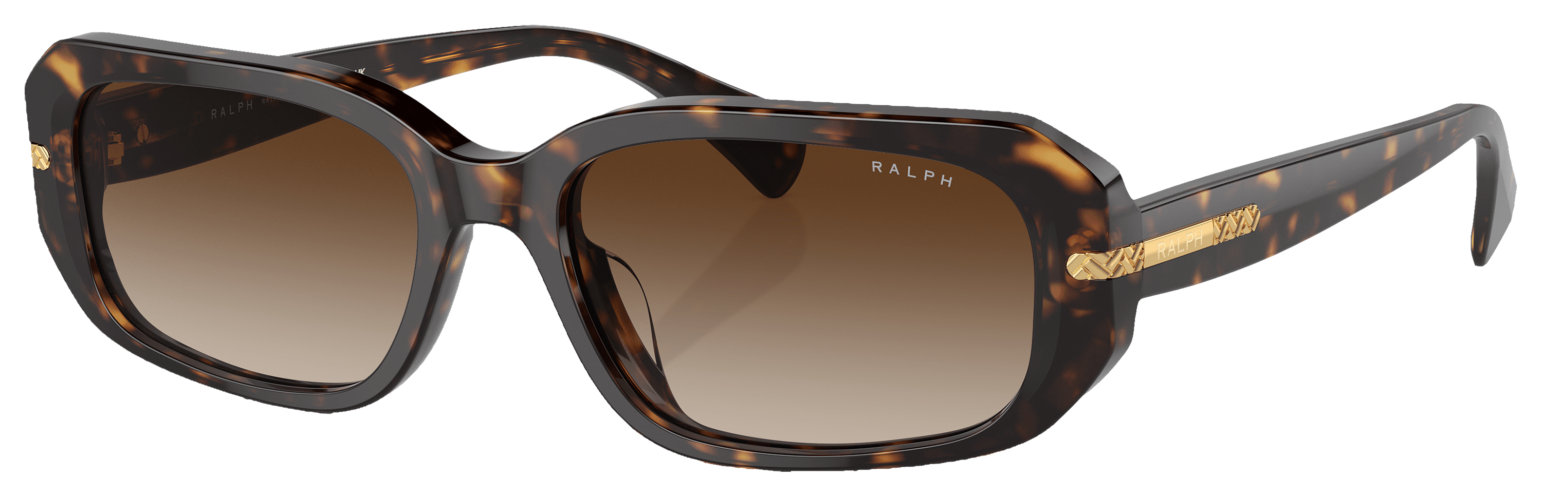 Ralph® RA5311U Sunglasses for Ladies call forth a classic style and puts its own spin on it to bring it into the modern era. These Ralph Lauren sunglasses have low-profile, rectangular frames attached to straight temples. Those temples have metallic accents that stretch forward unto the front of the frames. Acetate frame material keeps these Ralph Lauren sunglasses lightweight. The molded-in nose pads keep them in place and don't catch in your hair. Select styles have gradient lens tints that reduce eyestrain. Polycarbonate lenses provide you with UV protection. Manufacturer style #: RA5311U.