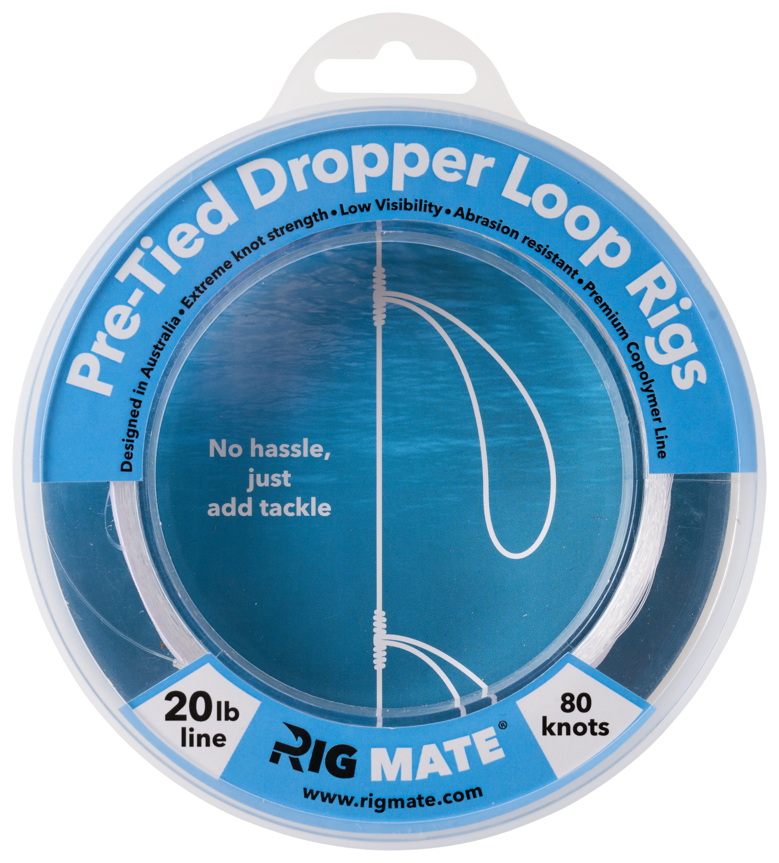 Sick of wasting hours tying knots or forking out big bucks on pre-made rigs? Rig Mate® Pre-Tied Dropper Loop Rigs were born from that exact frustration. Every angler knows the knot carries the most strain in a setup and must handle the heat when a fish strikes. Rig Mate takes that challenge seriously. Each knot on these loop rigs comes tied under precise, controlled tension using specialized equipment for perfect consistency and rock-solid reliability. Setting up a rig now takes mere seconds. Simply cut the loops you want, attach hooks and sinkers, and you're fishing before your friends even thread a line. Every spool packs 50-100 perfectly spaced, pre-tied knots, giving you up to 25 complete rigs ready to go. Each spool goes straight from the tackle box to tight lines in record time with no tangles, no fuss, and no tying. Customization stays simple too: swap hooks, add lumo beads, skirts, or different sinkers on the fly to suit the bite. Lighter lines handle trout and bream; heavier setups tackle reef fish and deep-water predators. Use it offshore, inshore, from the beach, rocks, or a freshwater jetty with bait, metal lures, or soft plastics. Some anglers even replace the sinker with a jighead or weighted lure to create unique rigs that match changing conditions. Rig Mate Pre-Tied Dropper Loop Rigs transform rigging from a chore into a few quick steps: Cut. Attach. Catch.