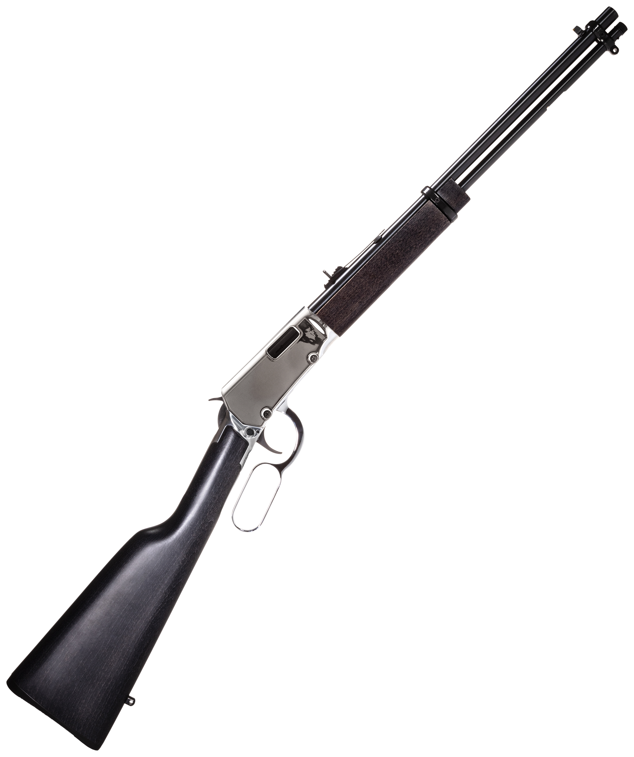Take a trip to the Old West with the classically inspired Rossi® Rio Bravo Nickel Lever-Action Rimfire Rifle. Based on Rossi's legendary R92, the Rio Bravo delivers tack-driving accuracy for plinking, pest control, and small-game hunting. And with a 15-round tube magazine, you can load it up on Sunday and shoot all week. Put one in your hands, and you'll be whistling "My Rifle, My Pony, and Me" all the way to the range. Aluminum alloy receiver. Alloy steel barrel. Polished nickel finish. Black wood furniture. Drift-adjustable front sight/semi-buckhorn rear sight. Manual cross-bolt safety.