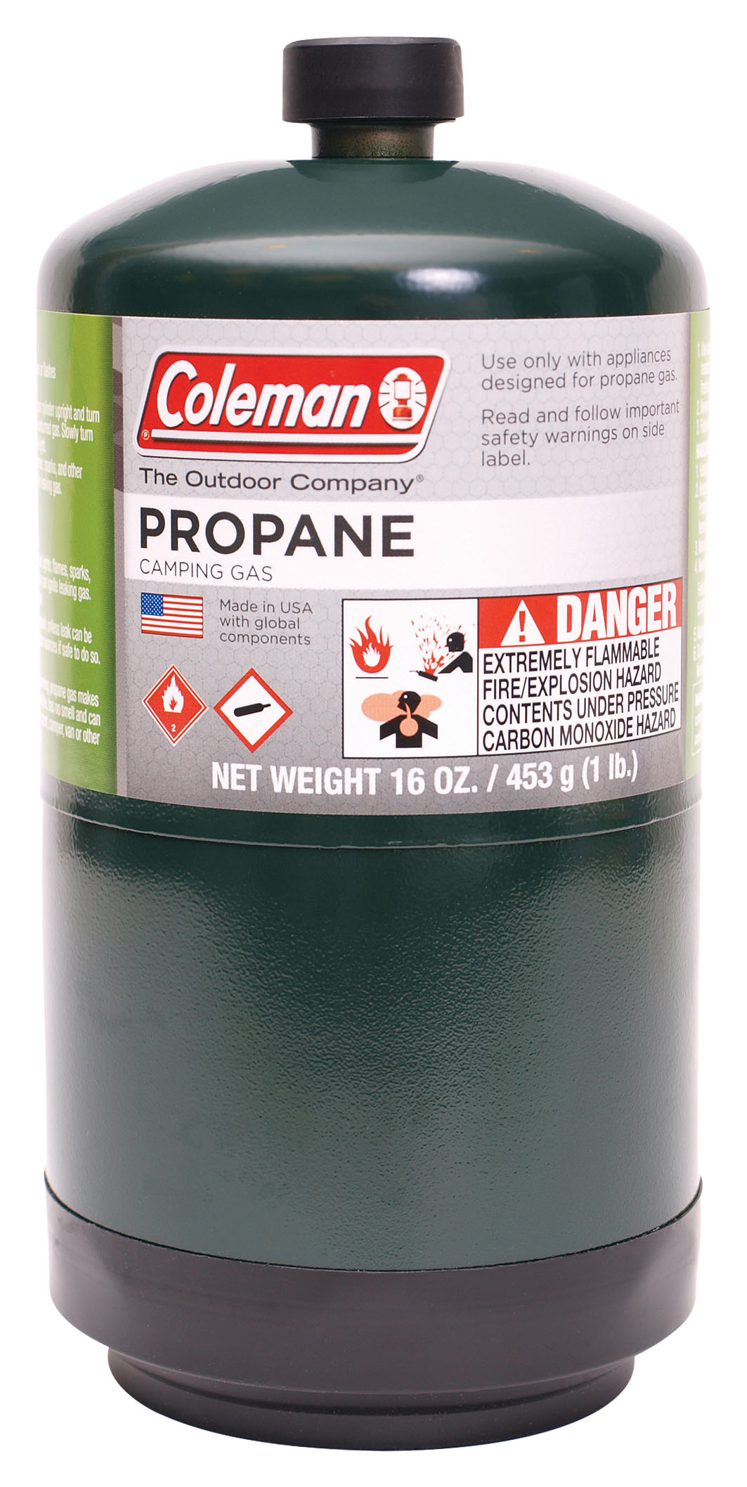 A versatile fuel source for all kinds of outdoor cooking and heating needs, the Coleman® 1-lb. Propane Cylinder ensures you always have enough fuel. Universal, 16-oz. size fits all standard, portable propane appliances, including tabletop grills, camp stoves, portable heaters, propane torches, and much more. Easy to pack, transport, and use, this easy-handling cylinder features quality steel construction, a stable base, and standard threads for safe and easy-to-use operation.
