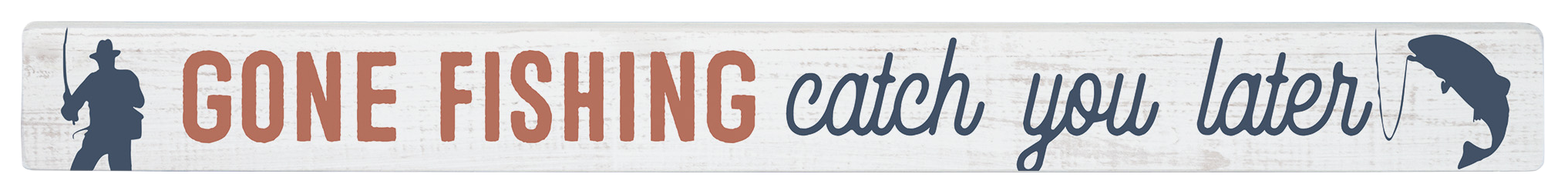 The Sincere Surroundings Gone Fishing Wooden Sign is a perfect addition to any lake cabin or man cave. This rustic piece of wall art from Sincere Surroundings is made of high-end pinewood and decorated with silhouettes of an angler, a fish on the line, and the words, "Gone fishing, catch you later." 16"L x 1.5"W x .5"D. Weight: 4.8 oz.