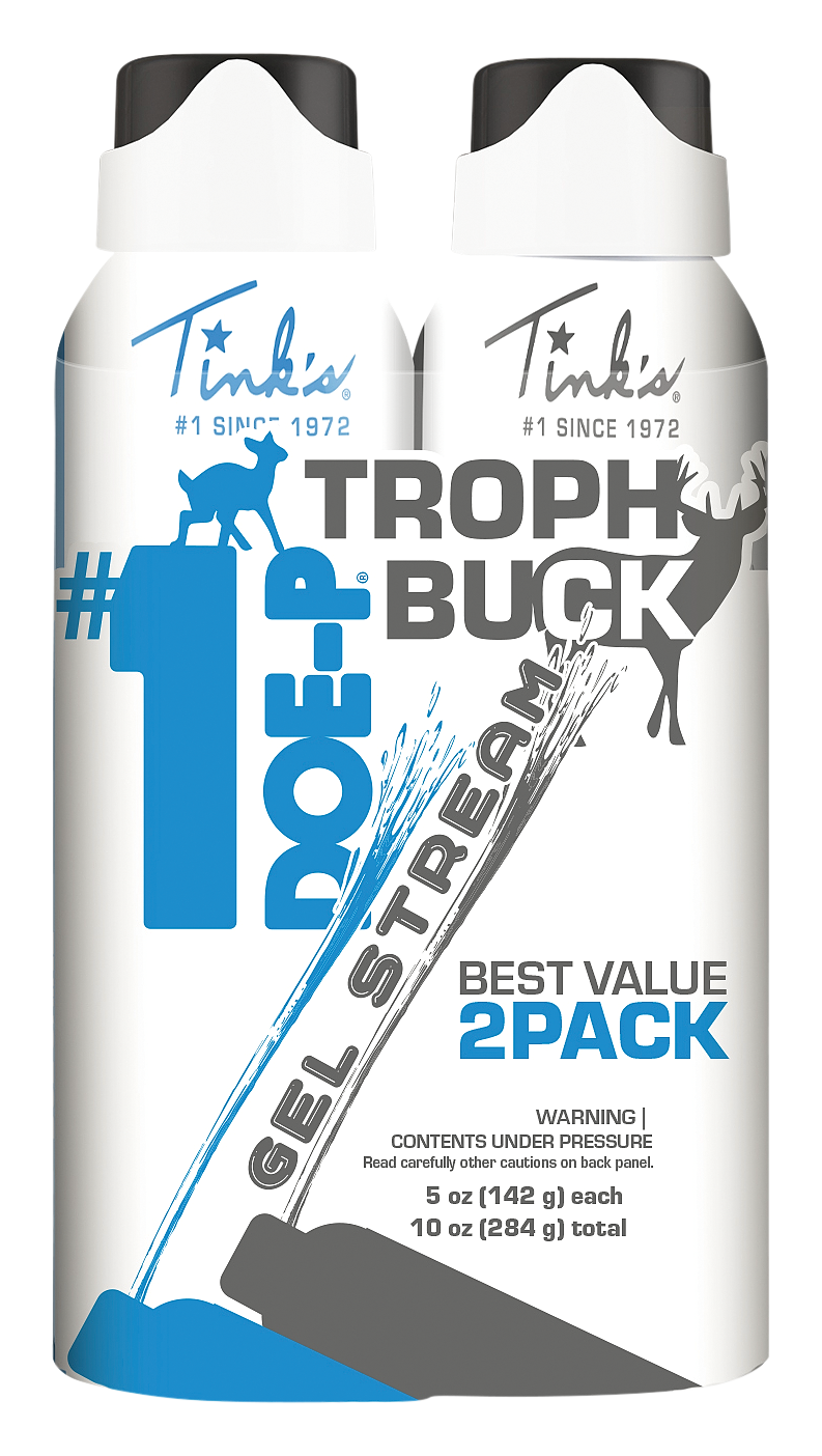 Give your hunting strategy a double-dose of attraction with the Tink's® #1 Doe-P® and Trophy Buck Gel Stream Scent 2-Pack. This Tink's scent combo includes #1 Doe-P for sparking curiosity during the pre-rut and rut, plus Trophy Buck to trigger dominant bucks' territorial instincts. Gel Stream shoots a stream of pure scented gel up to 10', giving you strategic placement options right from your stand.