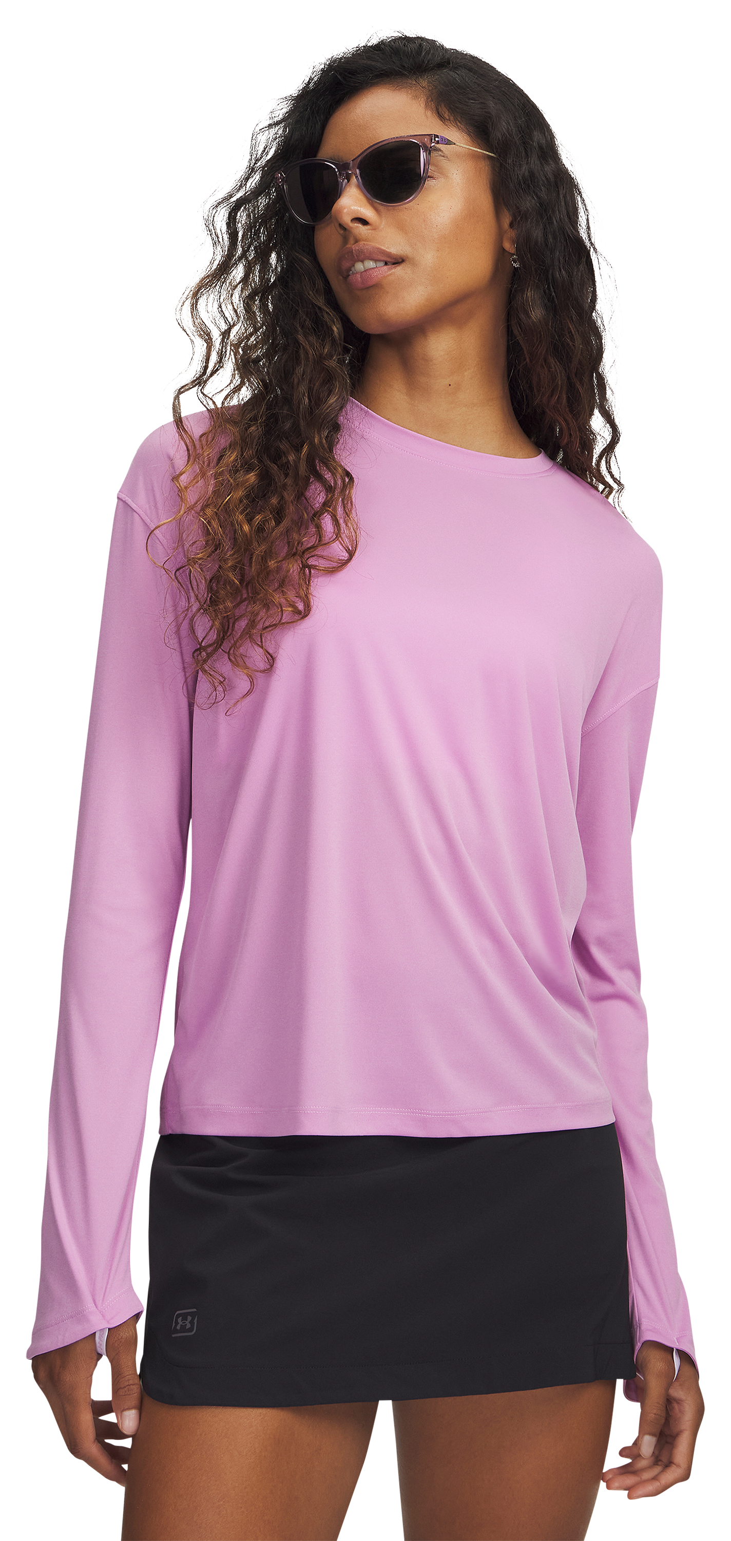 The Under Armour® Fish Elite Long-Sleeve Shirt provides the comfort, protection, and performance you need on the water. This Under Armour shirt features incredibly lightweight 100% polyester construction, while its fast-drying, breathable fabric wicks moisture to keep you cool and dry. UPF 40 sun protection safeguards your skin, and the extended sleeves with built-in thumb loops keeping sleeves in place maximize protection. This women's shirt has built-in 4-way stretch that pairs with raglan sleeves to allow unrestricted mobility. The Under Armour Fish Elite Long-Sleeve Shirt for women is finished with a logo on the left hem and center back. Machine wash. Imported. Manufacturer style #: 6005474.