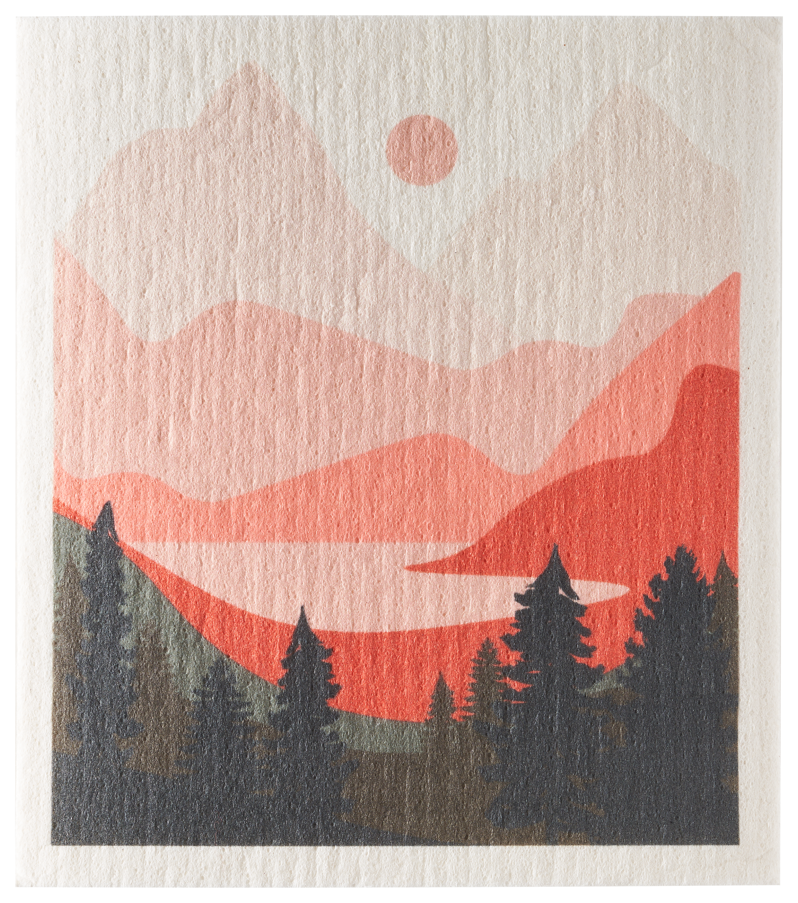 Bring the majesty of the outdoors to your cleaning routine with the White River Home™ Mountain Sunset Swedish Dishcloth. Earth-friendly cellulose fabric is super-absorbent, durable, and even compostable, allowing you to effectively clean and feel good about your choice. An excellent replacement for sponges and paper towels! 7.5"H x 6.75"W. Imported.