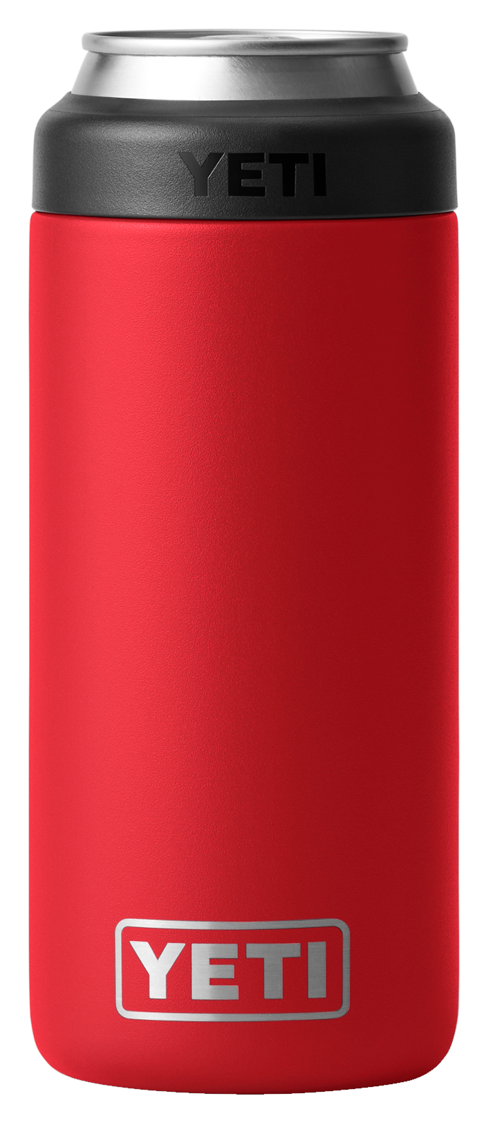 Perfect for slender 12-oz. cans, the YETI® Rambler 12-oz. Colster® Slim Can Cooler keeps your favorite beverage chilled. This YETI can cooler features kitchen-grade 18/8 stainless steel for long-lasting durability, while double-wall vacuum insulation seals in the cold. The No Sweat™ design eliminates condensation so your hand stays dry; plus, the Load-and-Lock™ Gasket locks your drink in place with a simple quarter turn. Duracoat™ colors won't chip or crack and deliver striking good looks, while the dishwasher-safe design makes your life easy when it's time to clean your YETI Rambler Colster. 6.13"H x 2.75"W. Weight: 9.28 oz.
